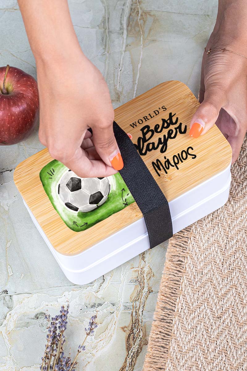 Δοχείου Φαγητού 2 Επιπέδων, με το Όνομα του Παιδιού, Love Football