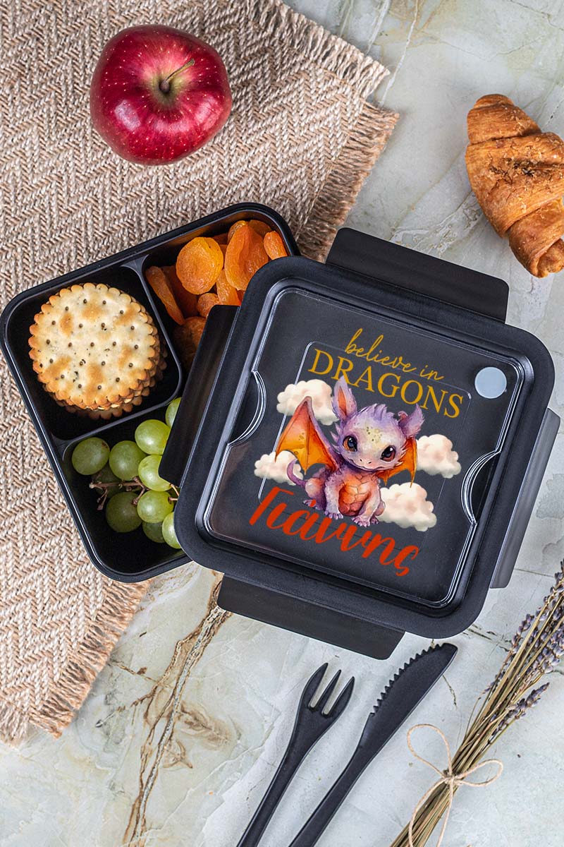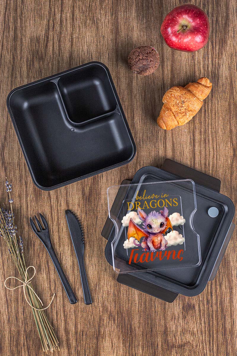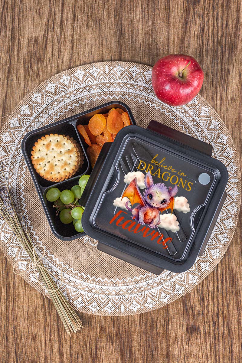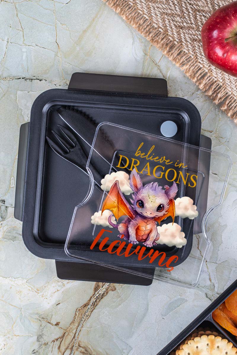 Δοχείο Φαγητού με Χώρισμα & το Όνομα του Παιδιού, Dragon Sky