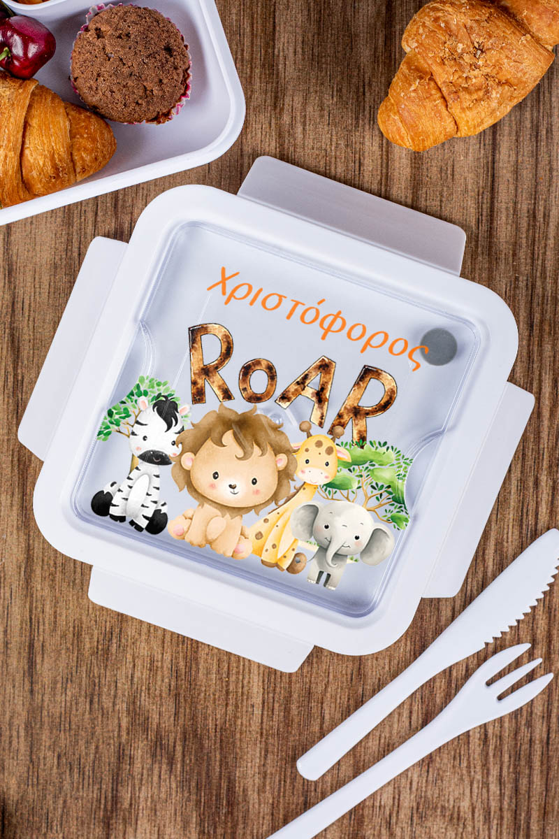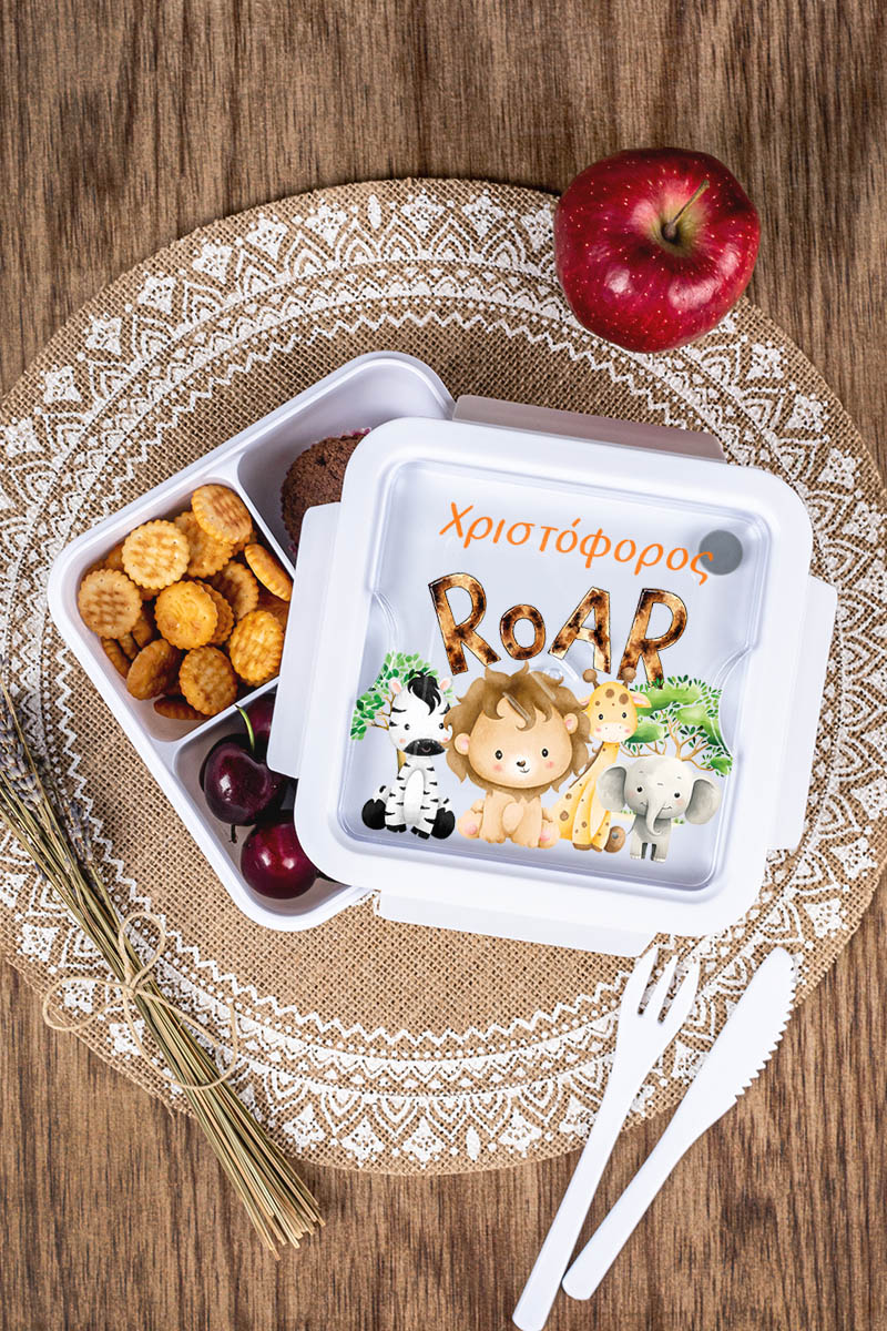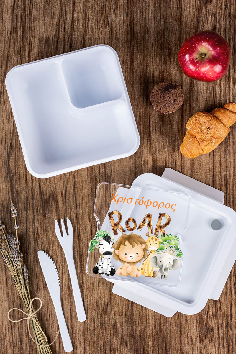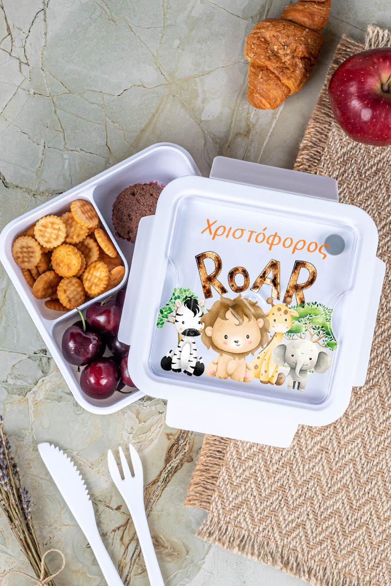 Δοχείο Φαγητού με Χώρισμα & το Όνομα του Παιδιού, Jungle Roar