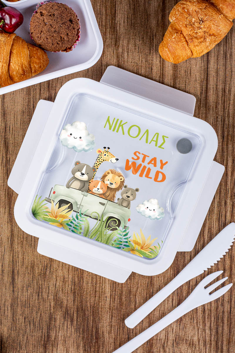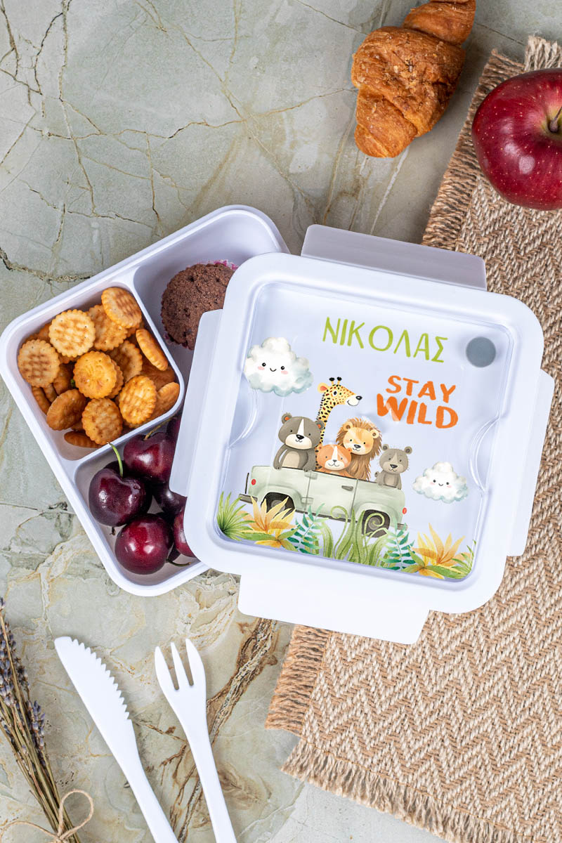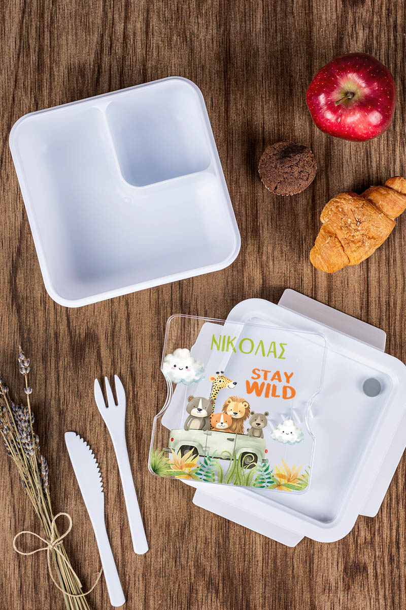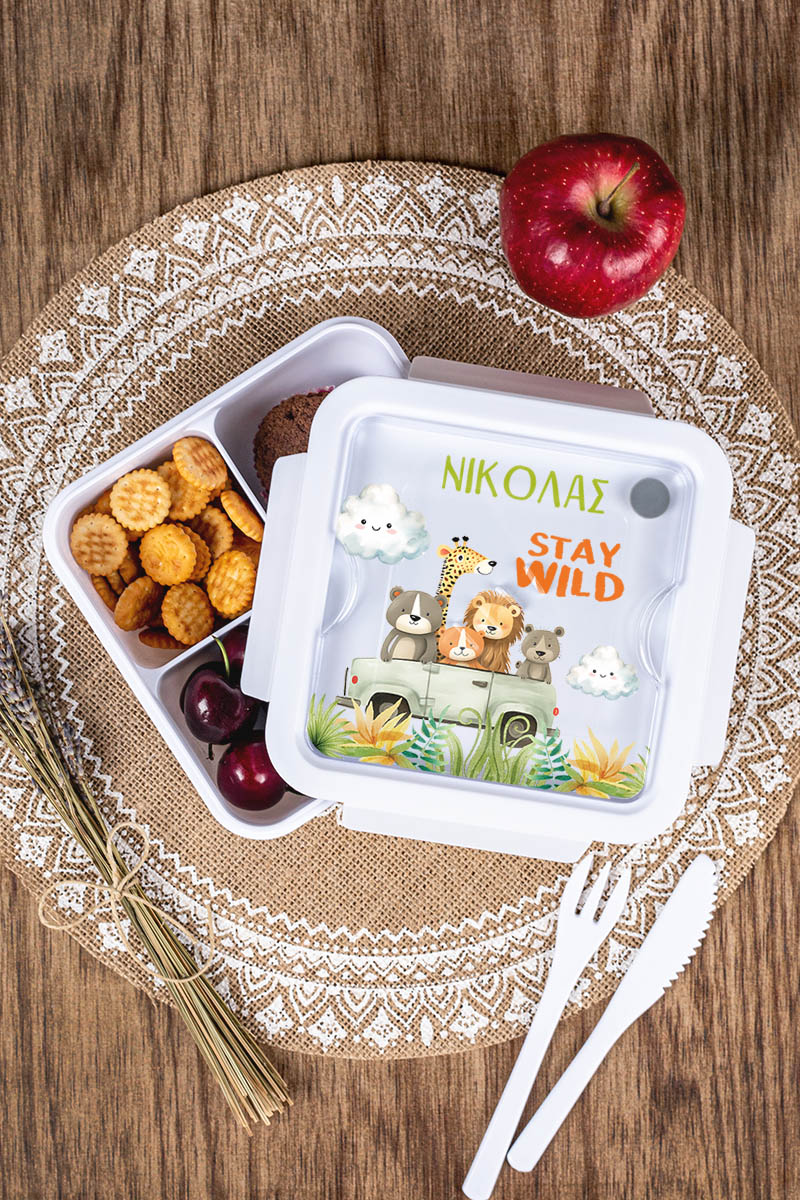 Δοχείο Φαγητού με Χώρισμα & το Όνομα του Παιδιού, Stay Wild