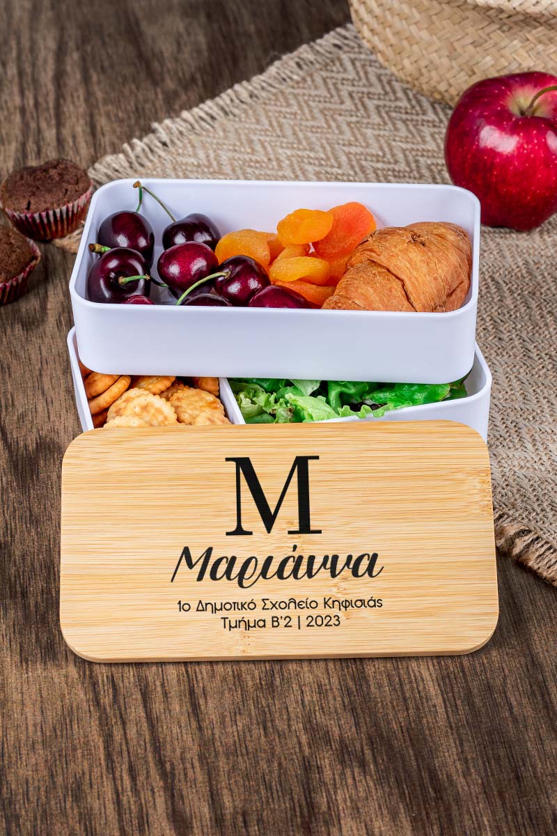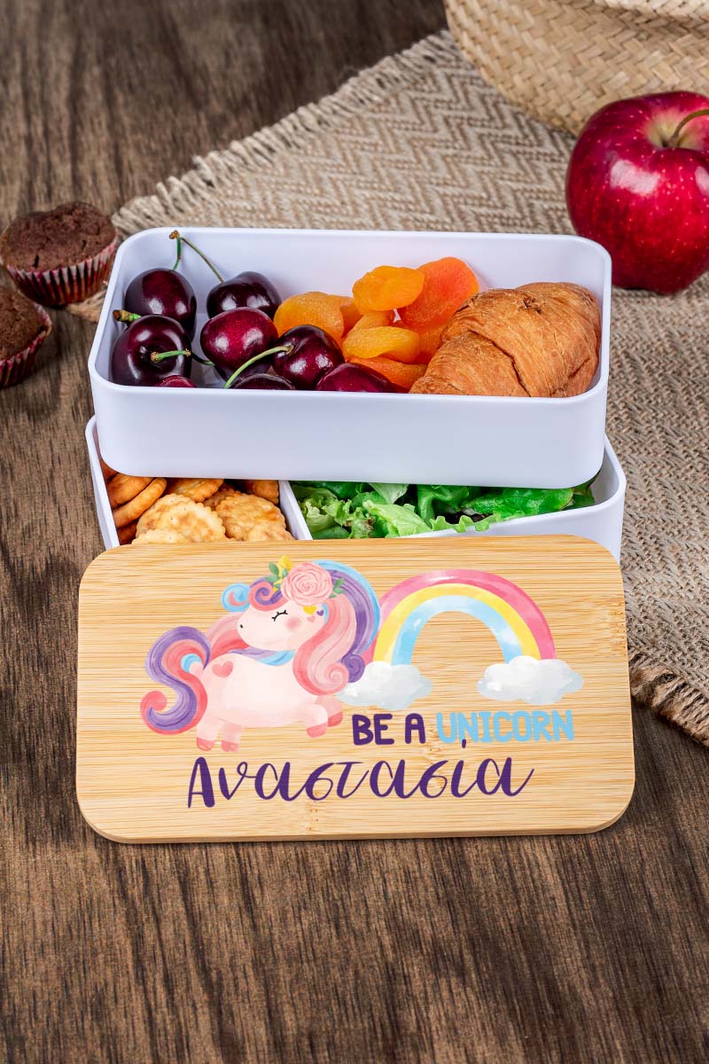 Παιδικό δοχείο φαγητού υψηλής ποιότητας, με 2 επιπέδα & εκτυπωμένο το όνομα του παιδιού ώστε να το ξεχωρίζει στο σχολείο!
