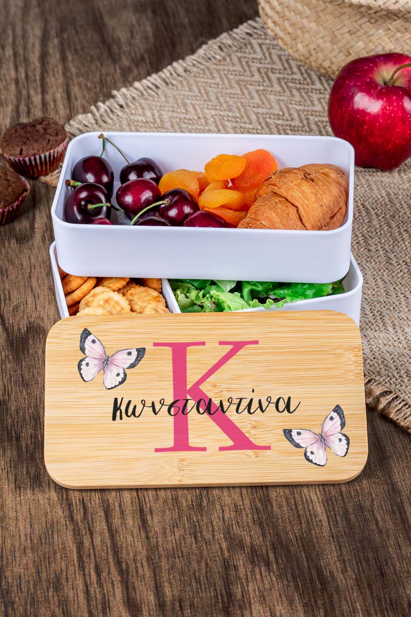 Παιδικό δοχείο φαγητού υψηλής ποιότητας, με 2 επιπέδα & εκτυπωμένο το όνομα του παιδιού ώστε να το ξεχωρίζει στο σχολείο!