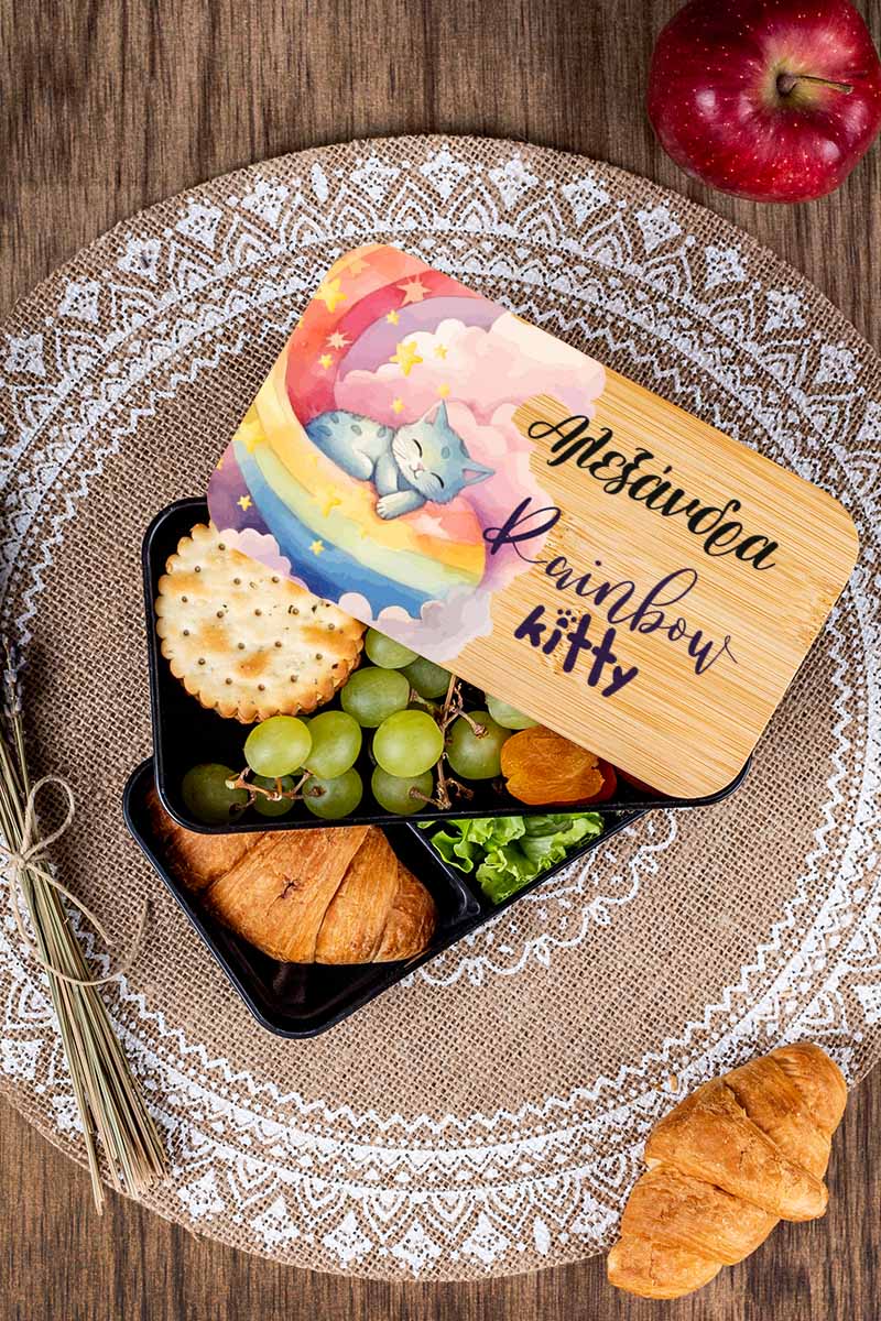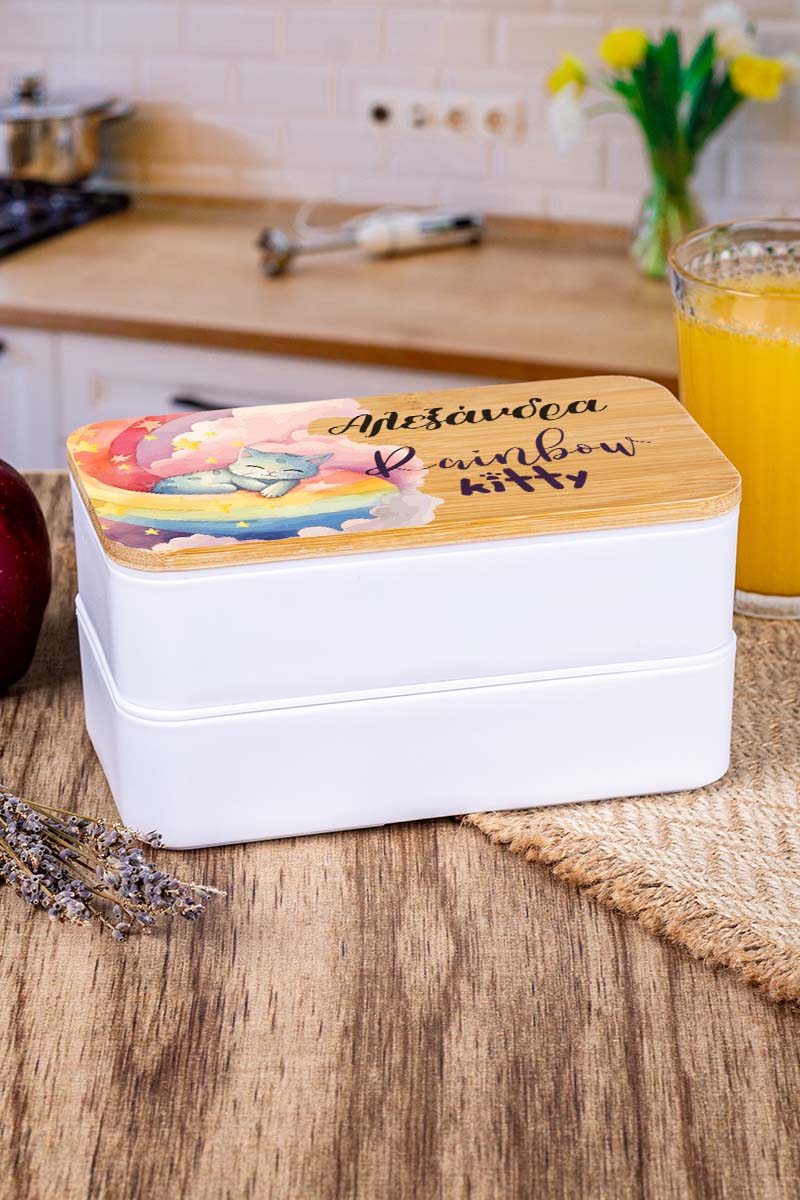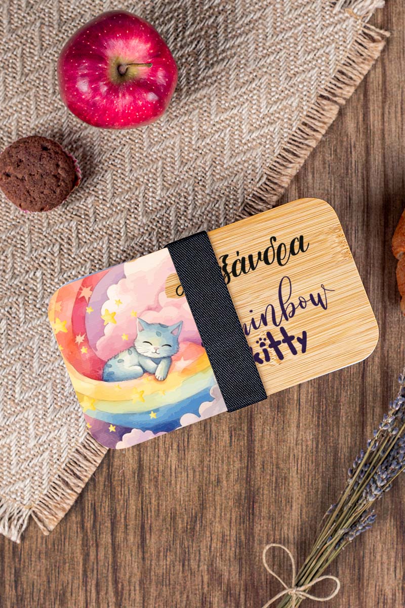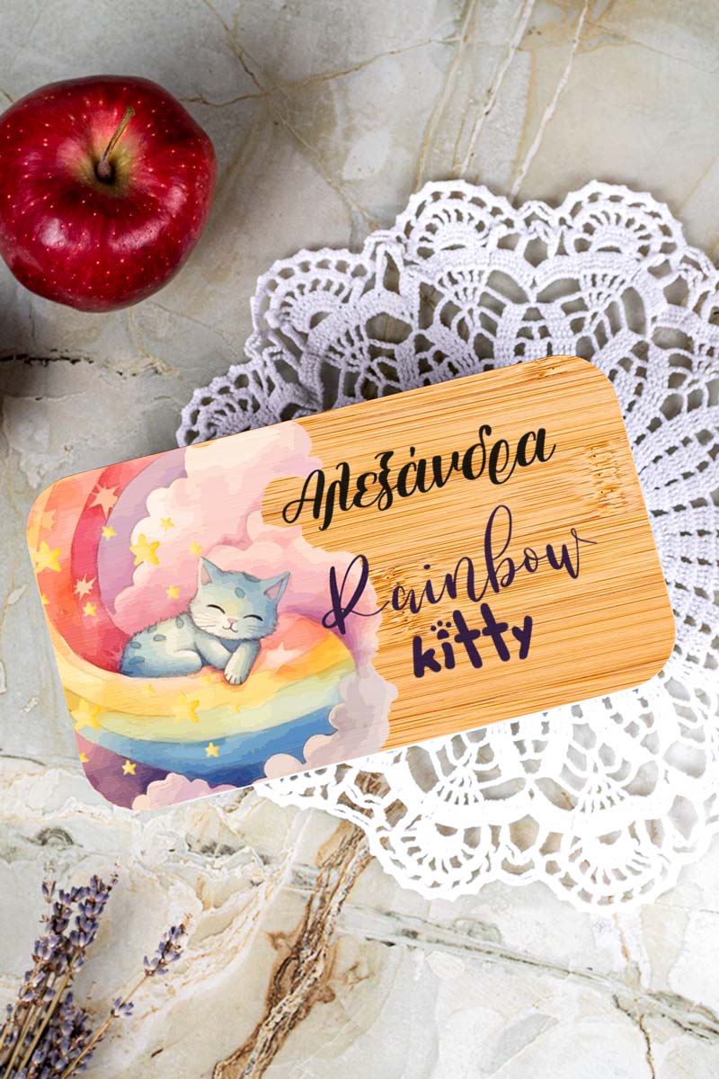 Δοχείου Φαγητού 2 Επιπέδων, με το Όνομα του Παιδιού, Rainbow Cat