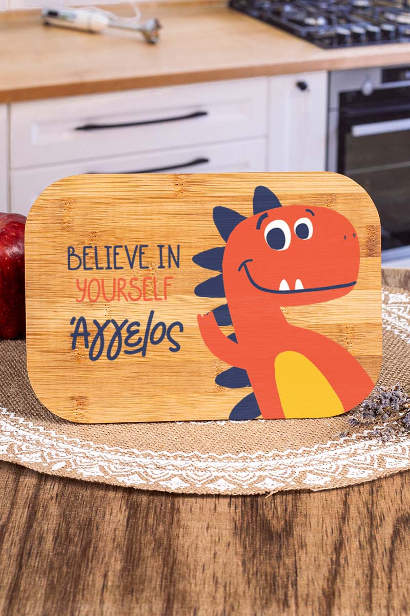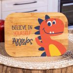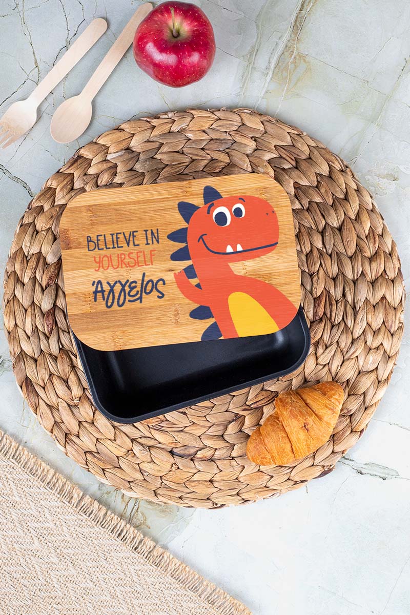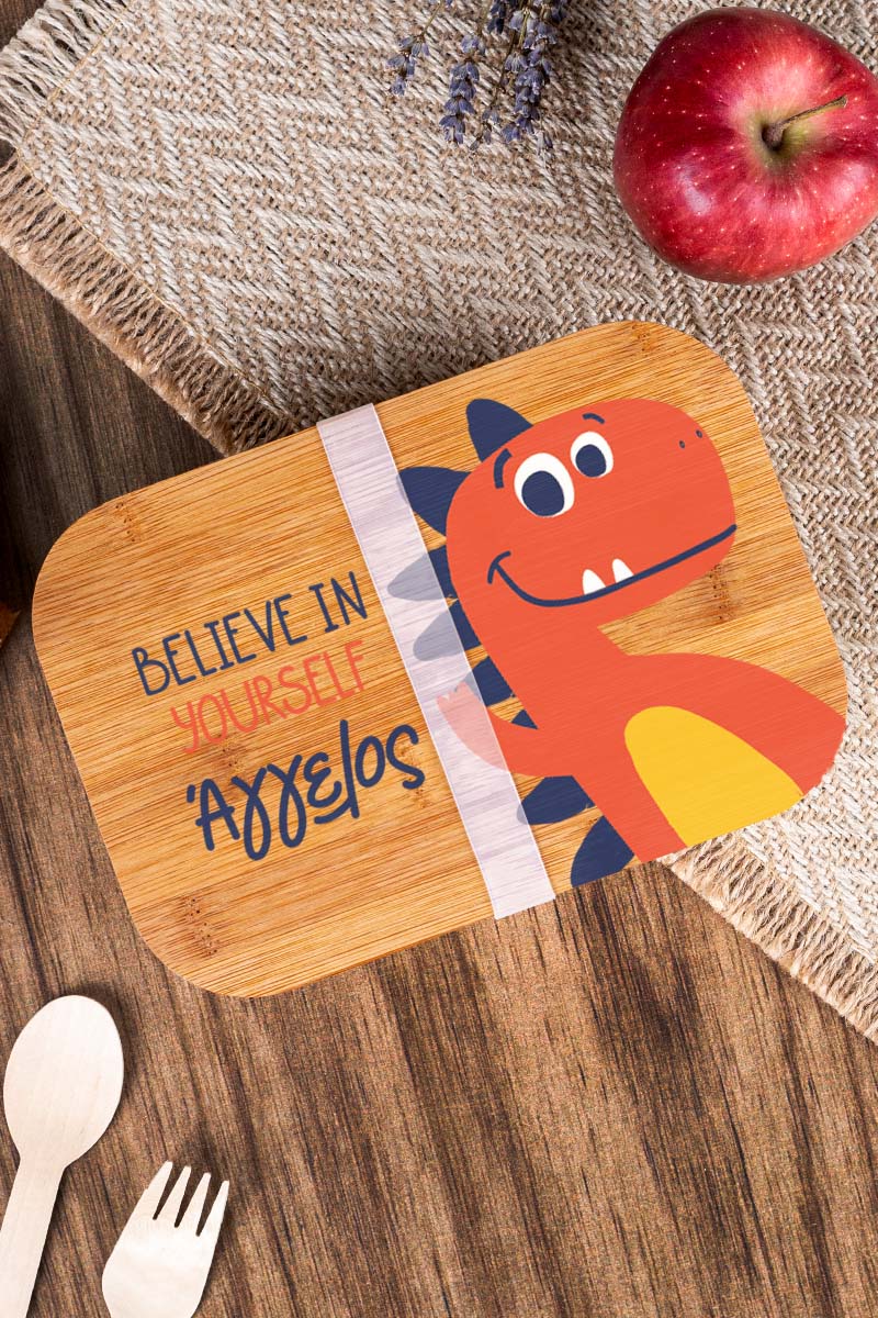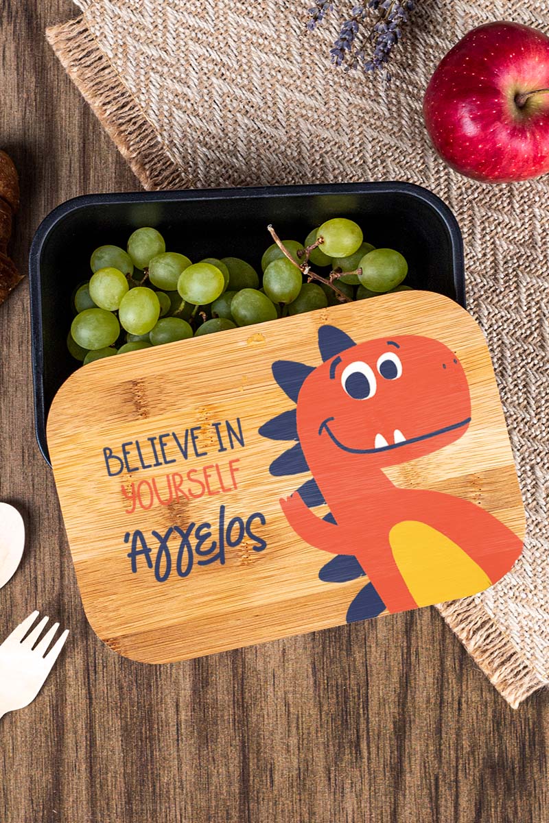 Παιδικό Δοχείο Φαγητού με το Όνομα του Παιδιού, Red Dinosaur