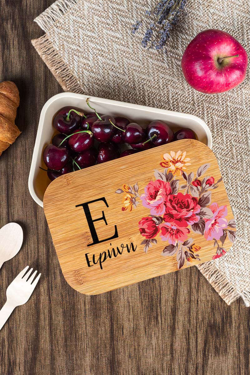Παιδικό Δοχείο Φαγητού με το Όνομα του Παιδιού, Rose Bouquet