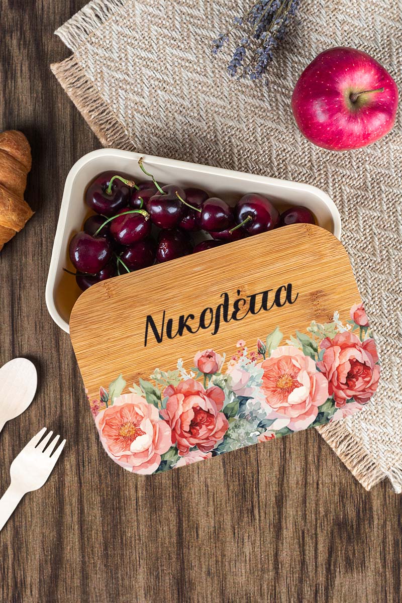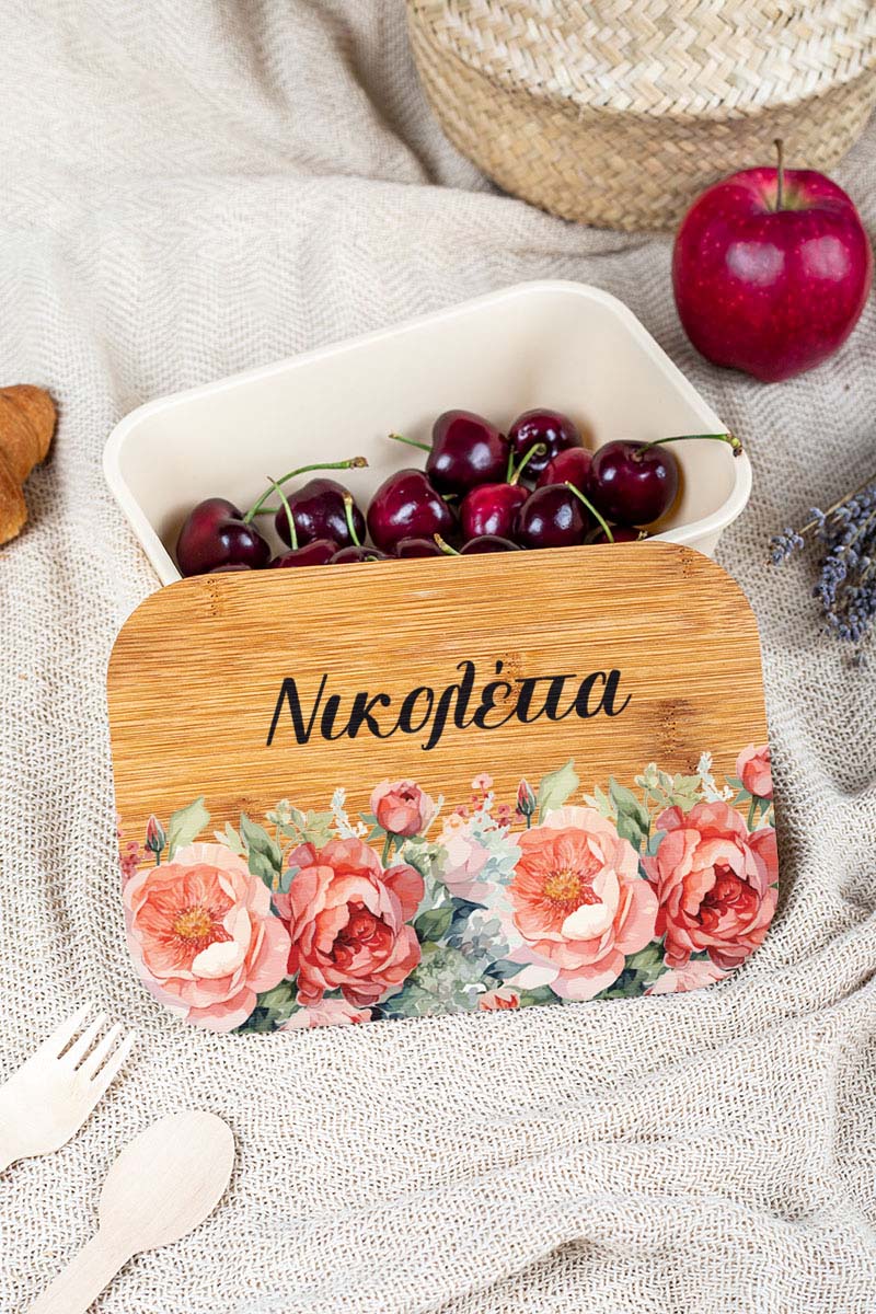 Παιδικό Δοχείο Φαγητού με το Όνομα του Παιδιού, Rose Garden