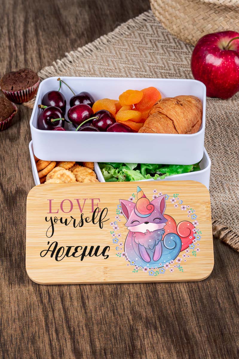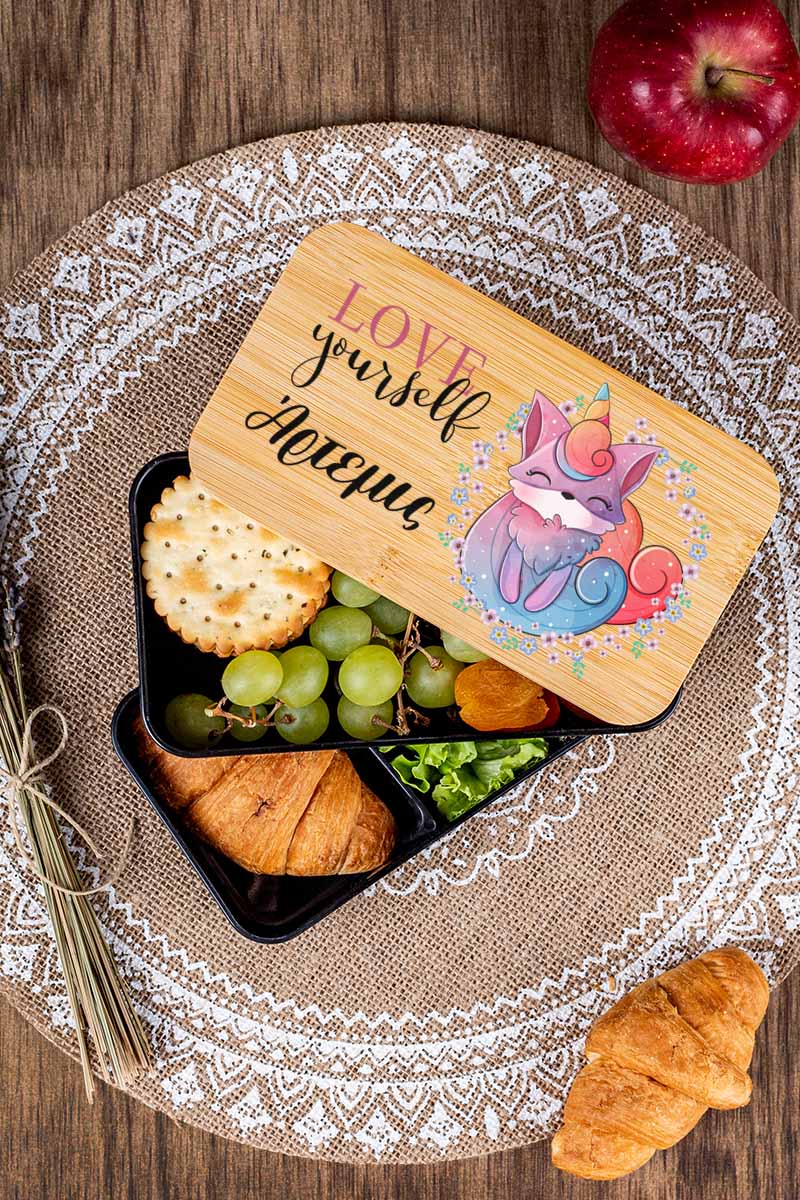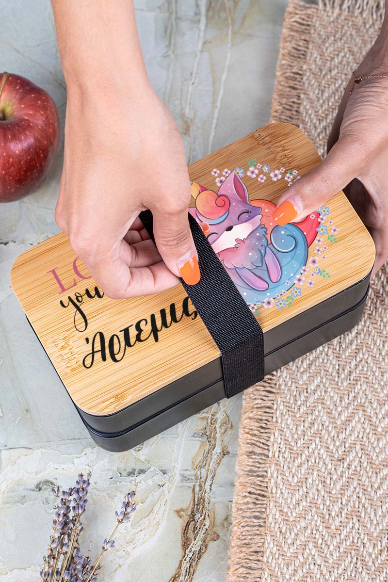Παιδικό δοχείο φαγητού υψηλής ποιότητας, με 2 επιπέδα & εκτυπωμένο το όνομα του παιδιού ώστε να το ξεχωρίζει στο σχολείο!