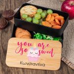 Παιδικό δοχείο φαγητού υψηλής ποιότητας, με 2 επιπέδα & εκτυπωμένο το όνομα του παιδιού ώστε να το ξεχωρίζει στο σχολείο!