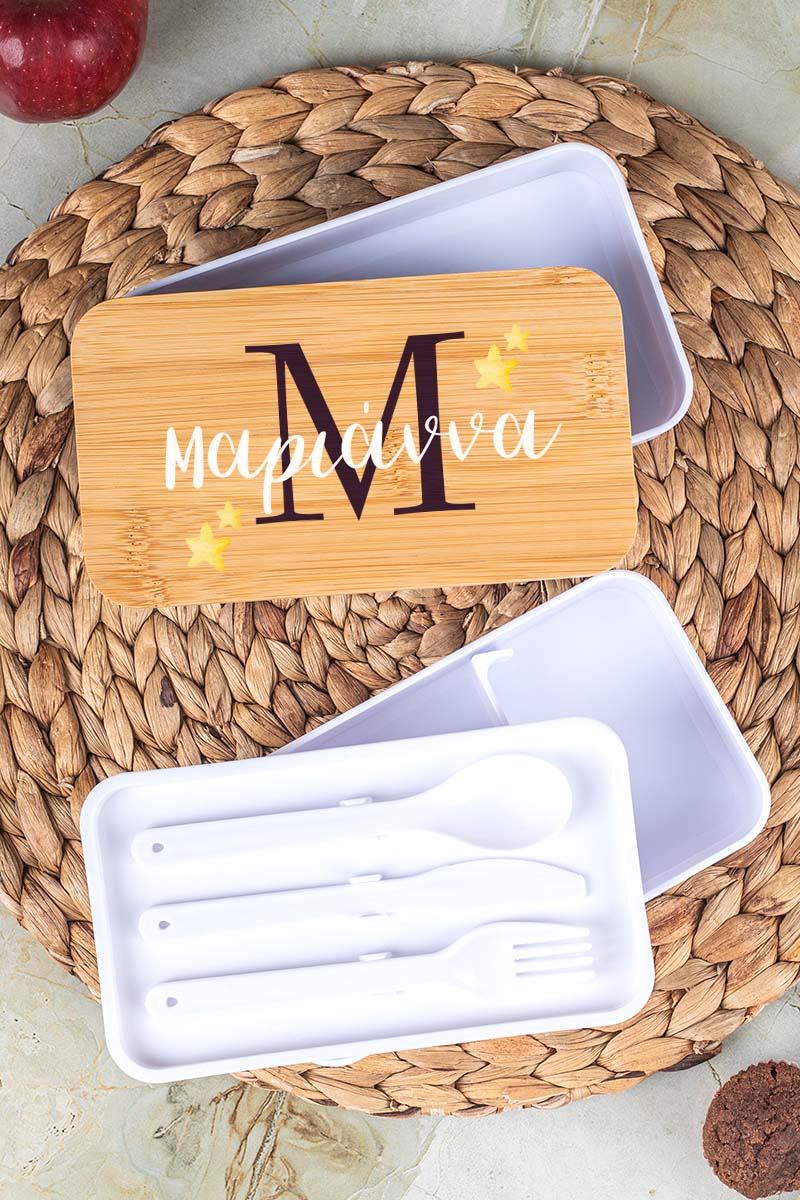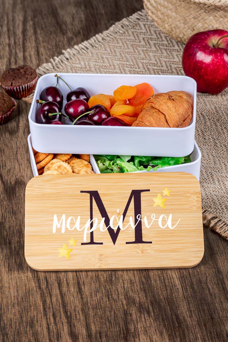 Παιδικό δοχείο φαγητού υψηλής ποιότητας, με 2 επιπέδα & εκτυπωμένο το όνομα του παιδιού ώστε να το ξεχωρίζει στο σχολείο!