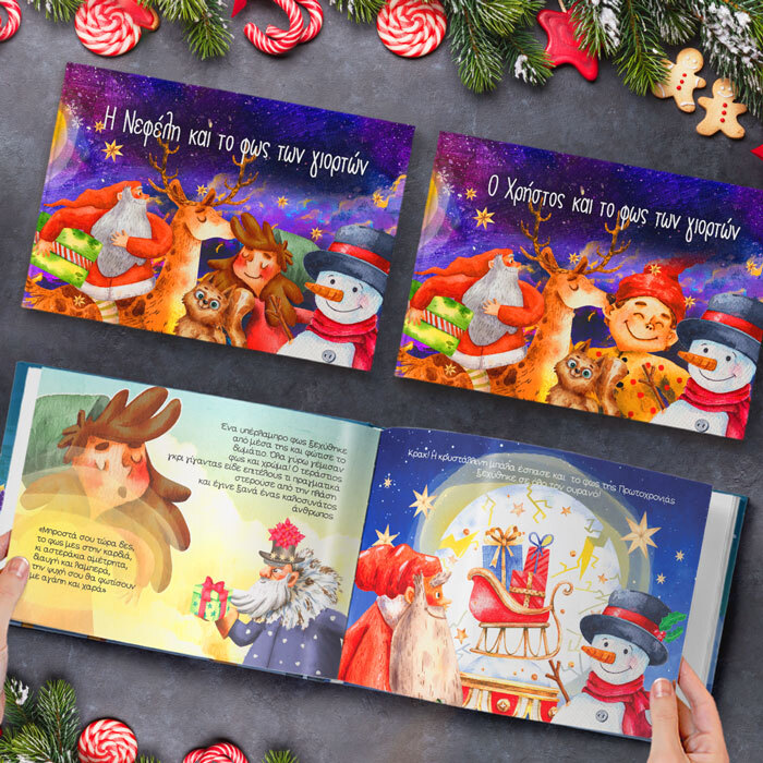 Δημιούργησε ένα υπέροχο & μοναδικό δώρο Χριστουγέννων – Πρωτοχρονιάς. Είτε πρόκειται για το παιδί σας, το εγγόνι, τα ανίψια είτε για δώρο γιορτής ή γενεθλίων! Το παιδί που θα λάβει για δώρο ένα βιβλίο με το όνομά του θα νιώσει αμέσως ιδιαίτερα ξεχωριστό!