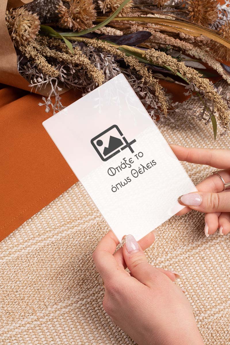 Αποκτήστε τα προσκλητήρια γάμου με σχέδιο Minimal Elegance. Οι πελάτες μας τα ξεχωρίζουν για το υψηλής ποιότητας ιταλικό χαρτί και την εκτύπωση υψηλής ευκρίνειας Myikona High Definition. Διαθέσιμα σε διαφορετικές διαστάσεις.