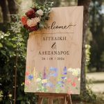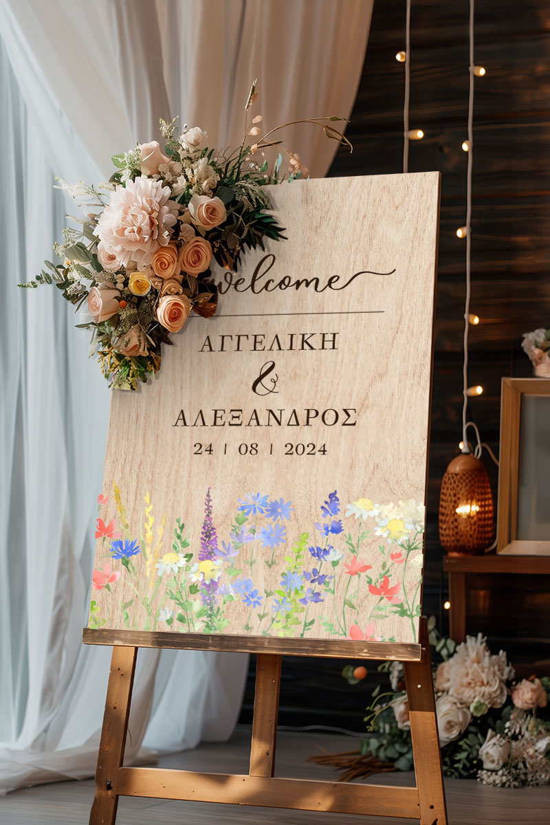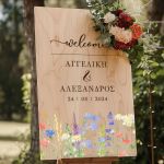 Επιγραφή Καλωσορίσματος Γάμου με Σχέδιο Ανοιξιάτικα Λουλούδια