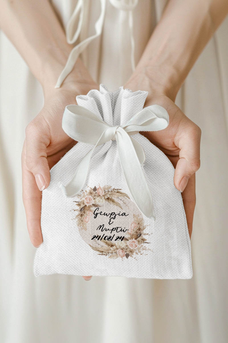 1.59€Μοντέρνες και Πρωτότυπες Μπομπονιέρες Βάπτισης με Πουγκί από Καμβά | Σετ Πουγκί, Εσωτερικό Τούλι & Κορδέλα Σατέν | Premium ποιότητα