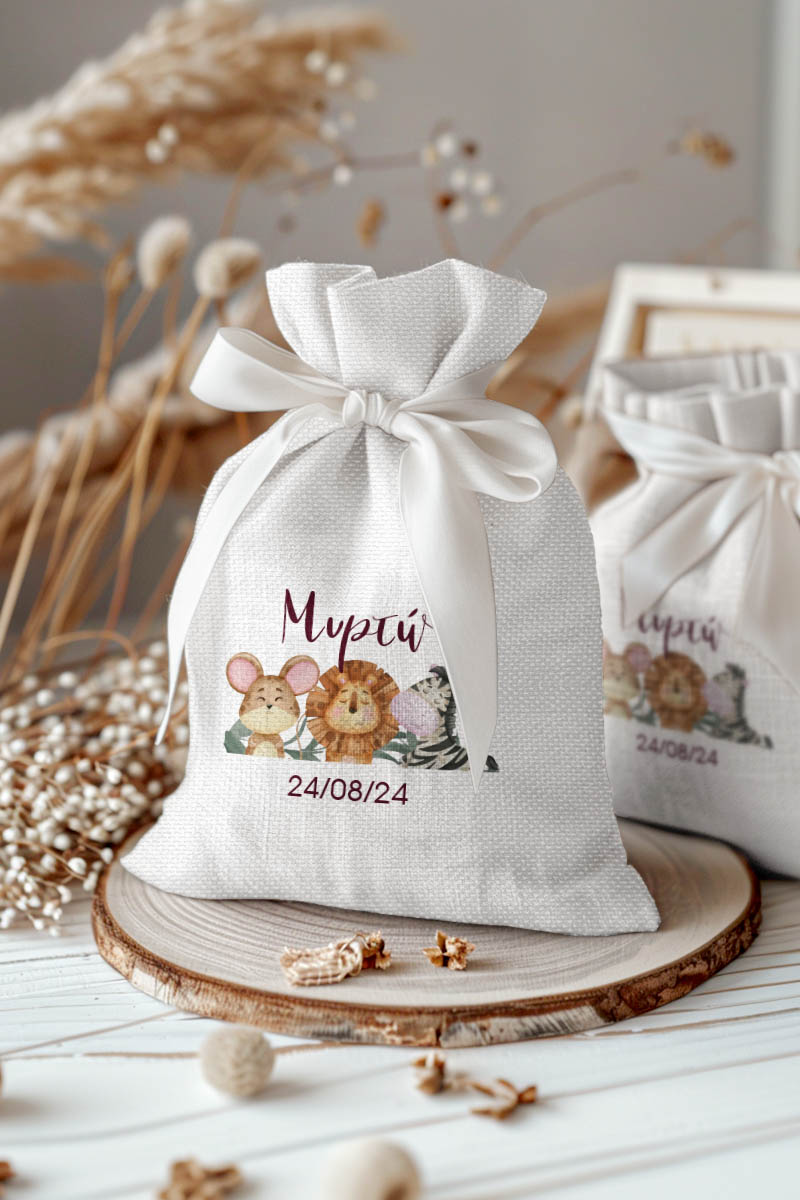 1.59€Μοντέρνες και Πρωτότυπες Μπομπονιέρες Βάπτισης με Πουγκί από Καμβά | Σετ Πουγκί, Εσωτερικό Τούλι & Κορδέλα Σατέν | Premium ποιότητα