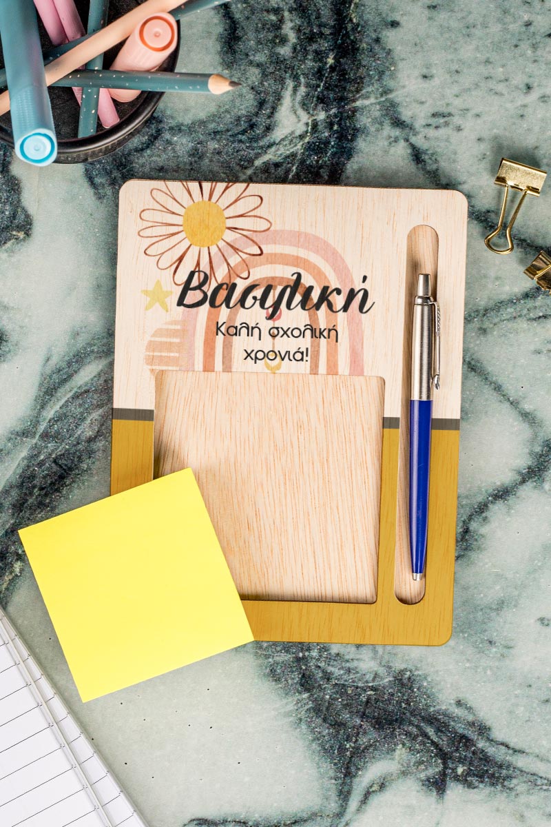 Οι προσωποποιημένες βάσεις οργάνωσης σχεδιάζονται ειδικά για να προσφέρουν ευκολία και πρακτικότητα. Διαθέτουν ειδικές θήκες για χαρτάκια post it, ώστε να μπορείτε να κρατάτε τις σημειώσεις σας οργανωμένες και εύκολα προσβάσιμες. Επιπλέον, προσφέρουν χώρους αποθήκευσης για τα στυλό και άλλα εργαλεία γραφής, επιτρέποντάς σας να τα έχετε πάντα στο χέρι σας.