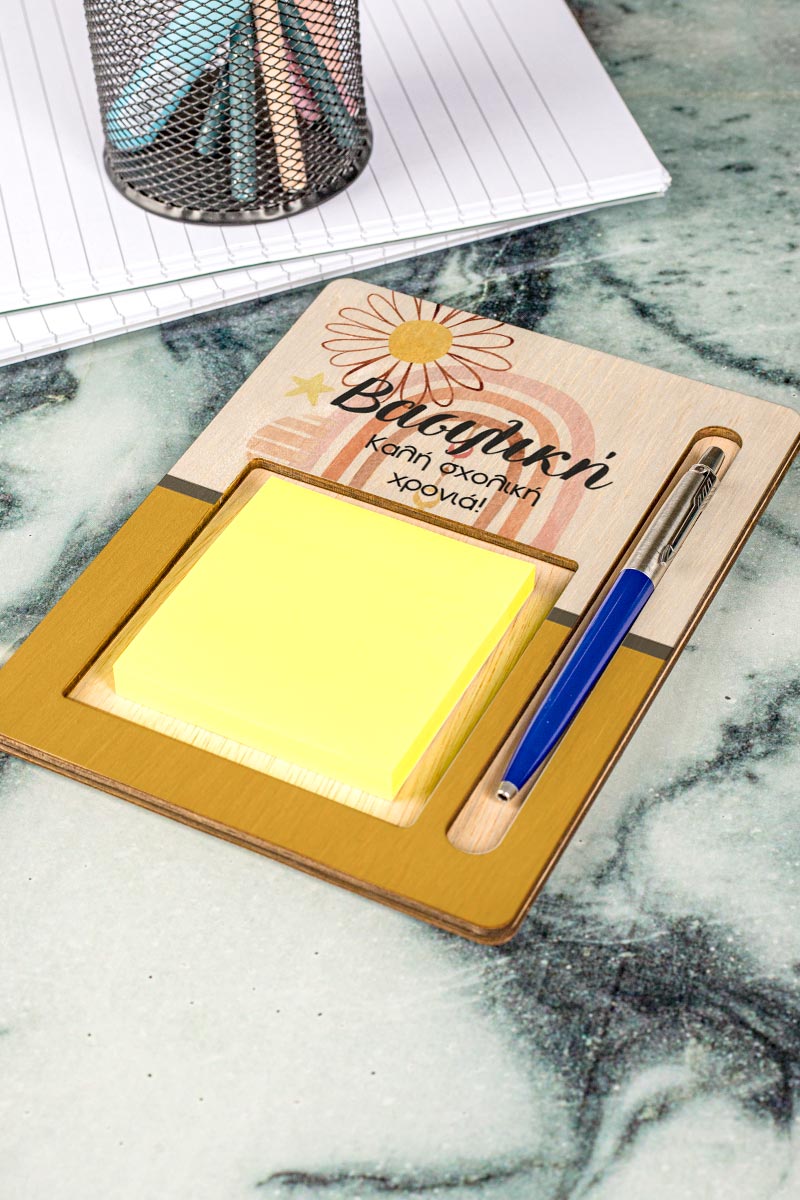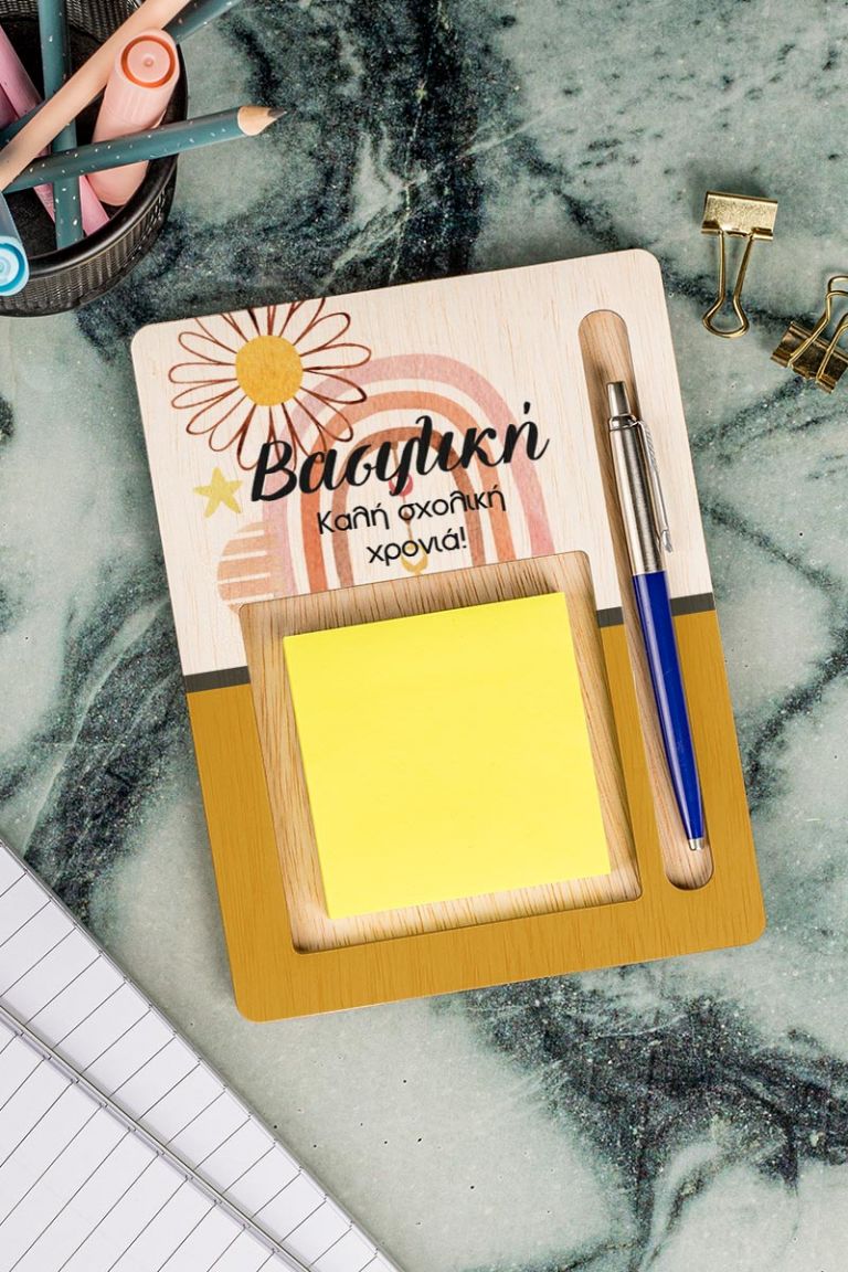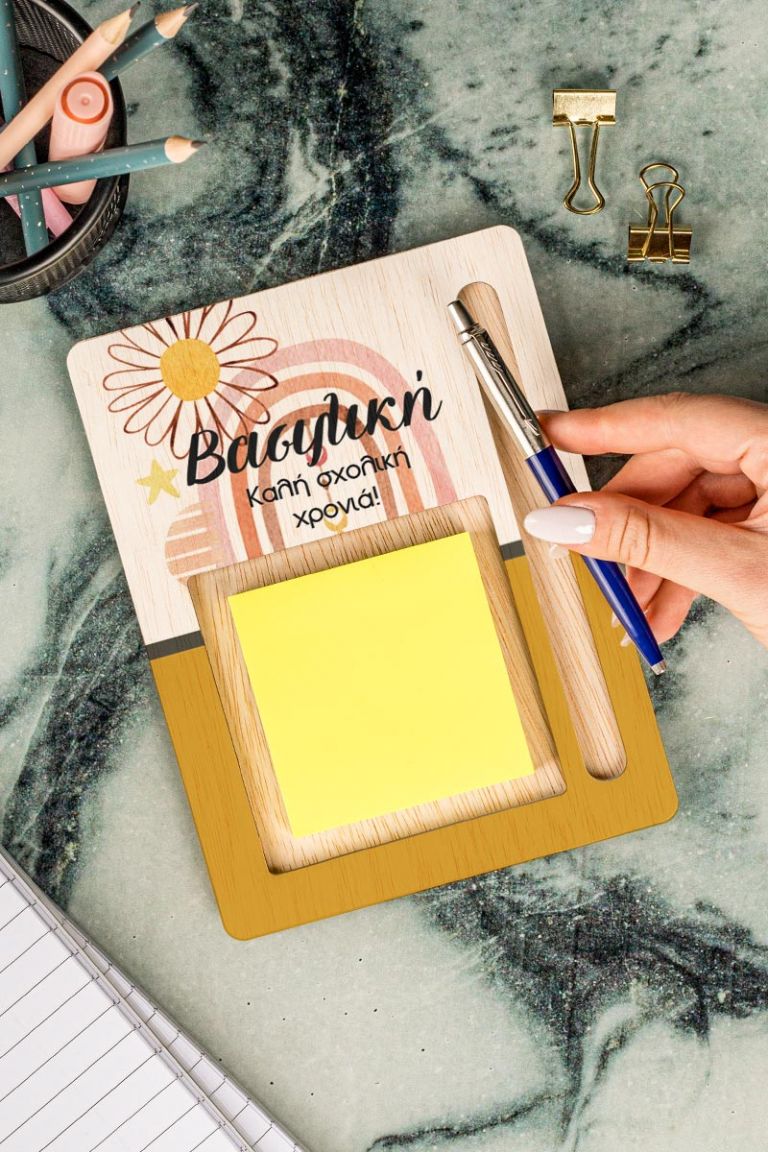 Διαμορφώστε το παιδικό γραφείο με στυλ και οργάνωση με τις προσωποποιημένες βάσεις οργάνωσης για χαρτάκια post it και στυλό. Αυτά τα προϊόντα δεν είναι μόνο πρακτικά, αλλά αποτελούν και μια όμορφη προσθήκη στην αισθητική του χώρου σας. Επιλέξτε το αγαπημένο σας σχέδιο και προσωποποιήστε το για μια πραγματικά μοναδική εμπειρία οργάνωσης.