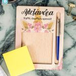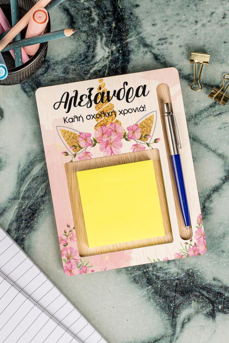 Διαμορφώστε το παιδικό γραφείο με στυλ και οργάνωση με τις προσωποποιημένες βάσεις οργάνωσης για χαρτάκια post it και στυλό. Αυτά τα προϊόντα δεν είναι μόνο πρακτικά, αλλά αποτελούν και μια όμορφη προσθήκη στην αισθητική του χώρου σας. Επιλέξτε το αγαπημένο σας σχέδιο και προσωποποιήστε το για μια πραγματικά μοναδική εμπειρία οργάνωσης.