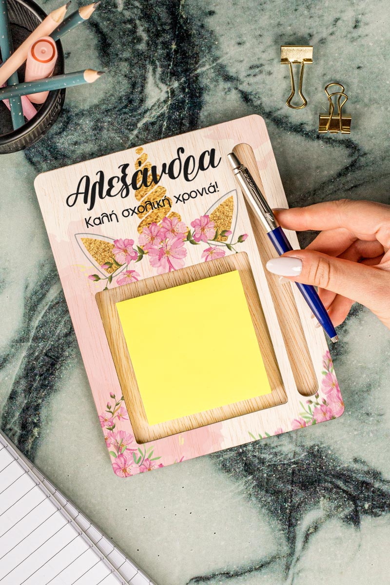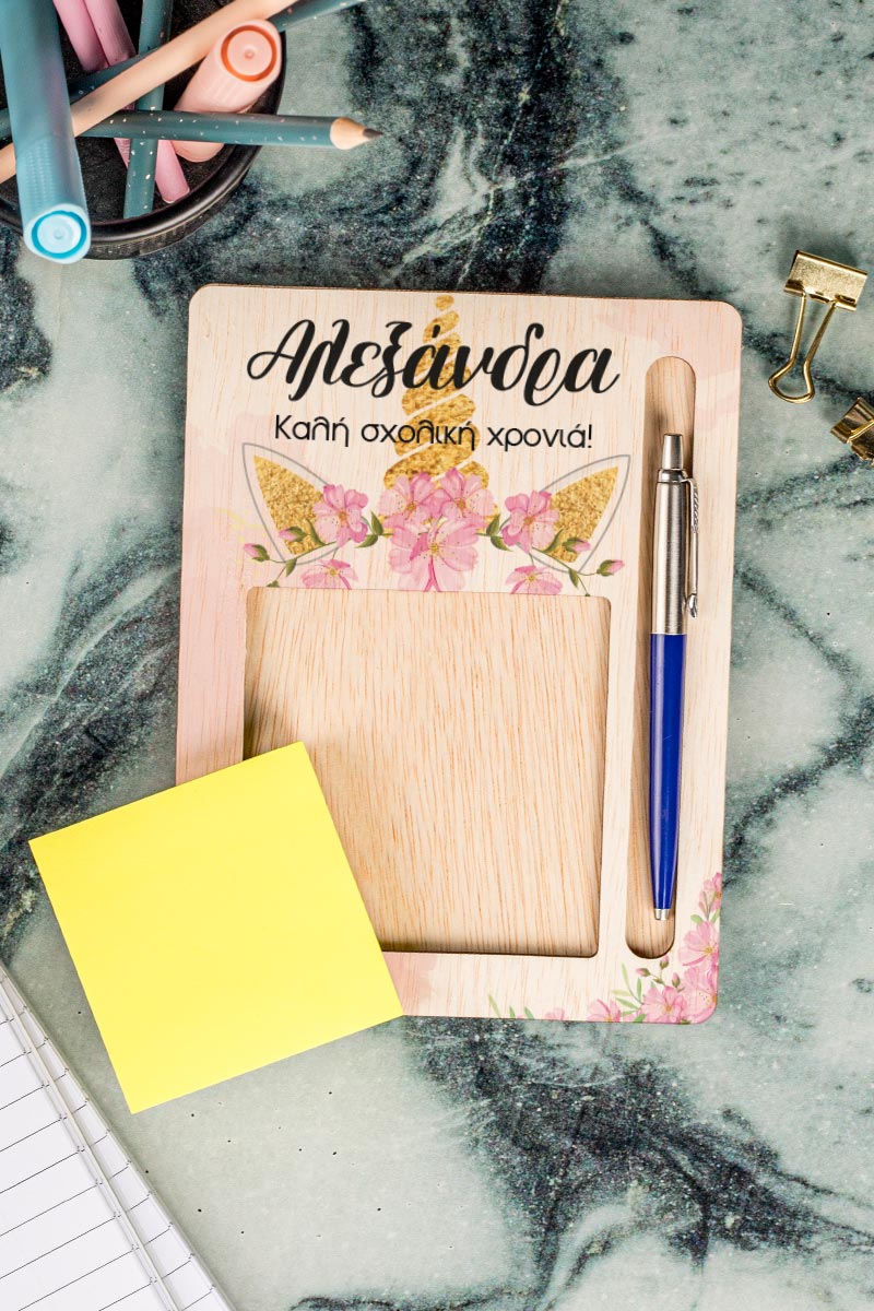 Post it Holder με Βάση για Στυλό και Σχέδιο, Floral Unicorn