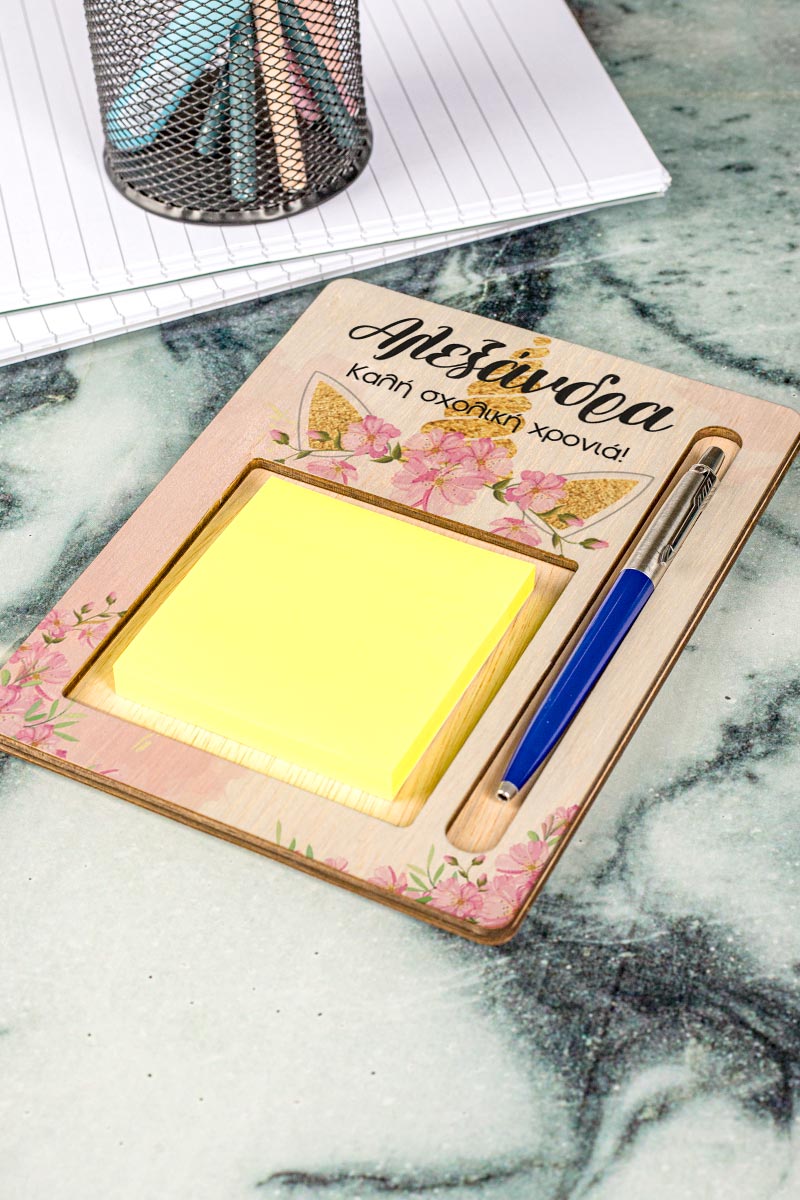 Οι προσωποποιημένες βάσεις οργάνωσης σχεδιάζονται ειδικά για να προσφέρουν ευκολία και πρακτικότητα. Διαθέτουν ειδικές θήκες για χαρτάκια post it, ώστε να μπορείτε να κρατάτε τις σημειώσεις σας οργανωμένες και εύκολα προσβάσιμες. Επιπλέον, προσφέρουν χώρους αποθήκευσης για τα στυλό και άλλα εργαλεία γραφής, επιτρέποντάς σας να τα έχετε πάντα στο χέρι σας.