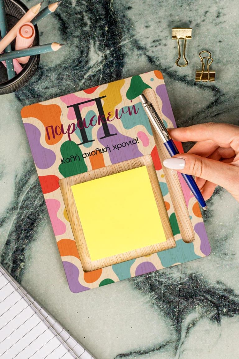 Διαμορφώστε το παιδικό γραφείο με στυλ και οργάνωση με τις προσωποποιημένες βάσεις οργάνωσης για χαρτάκια post it και στυλό. Αυτά τα προϊόντα δεν είναι μόνο πρακτικά, αλλά αποτελούν και μια όμορφη προσθήκη στην αισθητική του χώρου σας. Επιλέξτε το αγαπημένο σας σχέδιο και προσωποποιήστε το για μια πραγματικά μοναδική εμπειρία οργάνωσης.