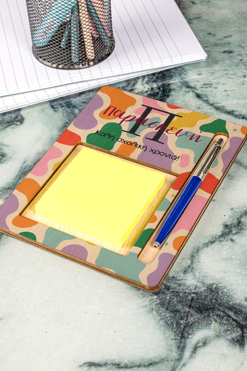 Οι προσωποποιημένες βάσεις οργάνωσης σχεδιάζονται ειδικά για να προσφέρουν ευκολία και πρακτικότητα. Διαθέτουν ειδικές θήκες για χαρτάκια post it, ώστε να μπορείτε να κρατάτε τις σημειώσεις σας οργανωμένες και εύκολα προσβάσιμες. Επιπλέον, προσφέρουν χώρους αποθήκευσης για τα στυλό και άλλα εργαλεία γραφής, επιτρέποντάς σας να τα έχετε πάντα στο χέρι σας.