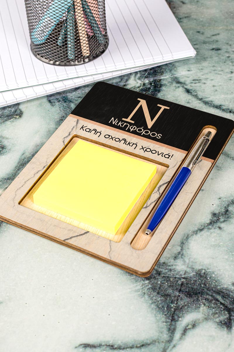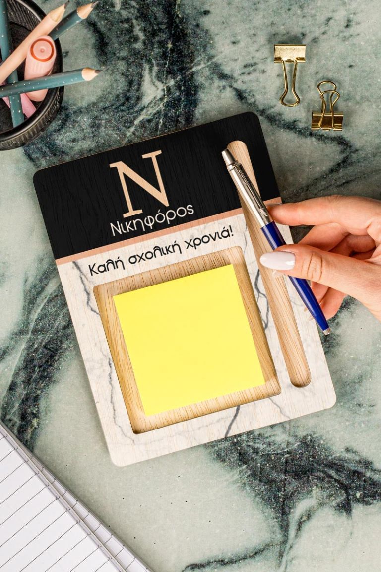 Οι προσωποποιημένες βάσεις οργάνωσης σχεδιάζονται ειδικά για να προσφέρουν ευκολία και πρακτικότητα. Διαθέτουν ειδικές θήκες για χαρτάκια post it, ώστε να μπορείτε να κρατάτε τις σημειώσεις σας οργανωμένες και εύκολα προσβάσιμες. Επιπλέον, προσφέρουν χώρους αποθήκευσης για τα στυλό και άλλα εργαλεία γραφής, επιτρέποντάς σας να τα έχετε πάντα στο χέρι σας.