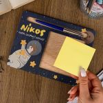 Διαμορφώστε το παιδικό γραφείο με στυλ και οργάνωση με τις προσωποποιημένες βάσεις οργάνωσης για χαρτάκια post it και στυλό. Αυτά τα προϊόντα δεν είναι μόνο πρακτικά, αλλά αποτελούν και μια όμορφη προσθήκη στην αισθητική του χώρου σας. Επιλέξτε το αγαπημένο σας σχέδιο και προσωποποιήστε το για μια πραγματικά μοναδική εμπειρία οργάνωσης.