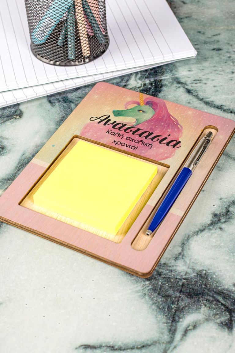 Διαμορφώστε το παιδικό γραφείο με στυλ και οργάνωση με τις προσωποποιημένες βάσεις οργάνωσης για χαρτάκια post it και στυλό. Αυτά τα προϊόντα δεν είναι μόνο πρακτικά, αλλά αποτελούν και μια όμορφη προσθήκη στην αισθητική του χώρου σας. Επιλέξτε το αγαπημένο σας σχέδιο και προσωποποιήστε το για μια πραγματικά μοναδική εμπειρία οργάνωσης.