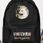 Σχολική Τσάντα Δημοτικού, Μαύρο Χρώμα, Little Unicorn