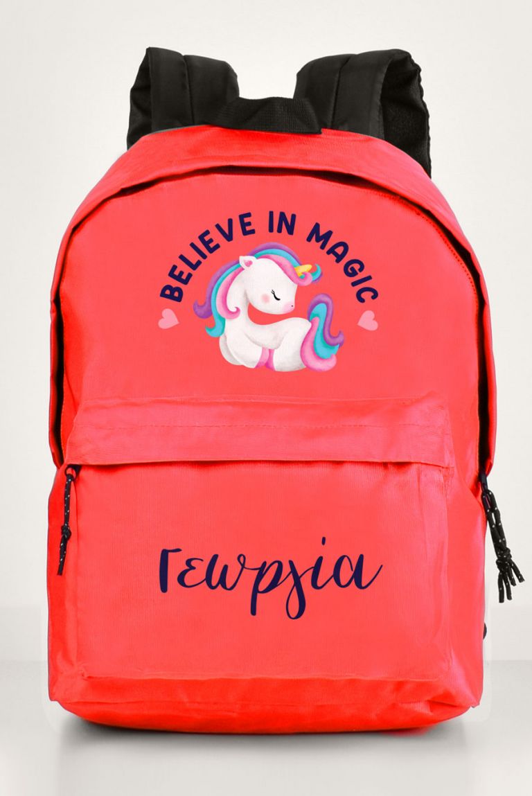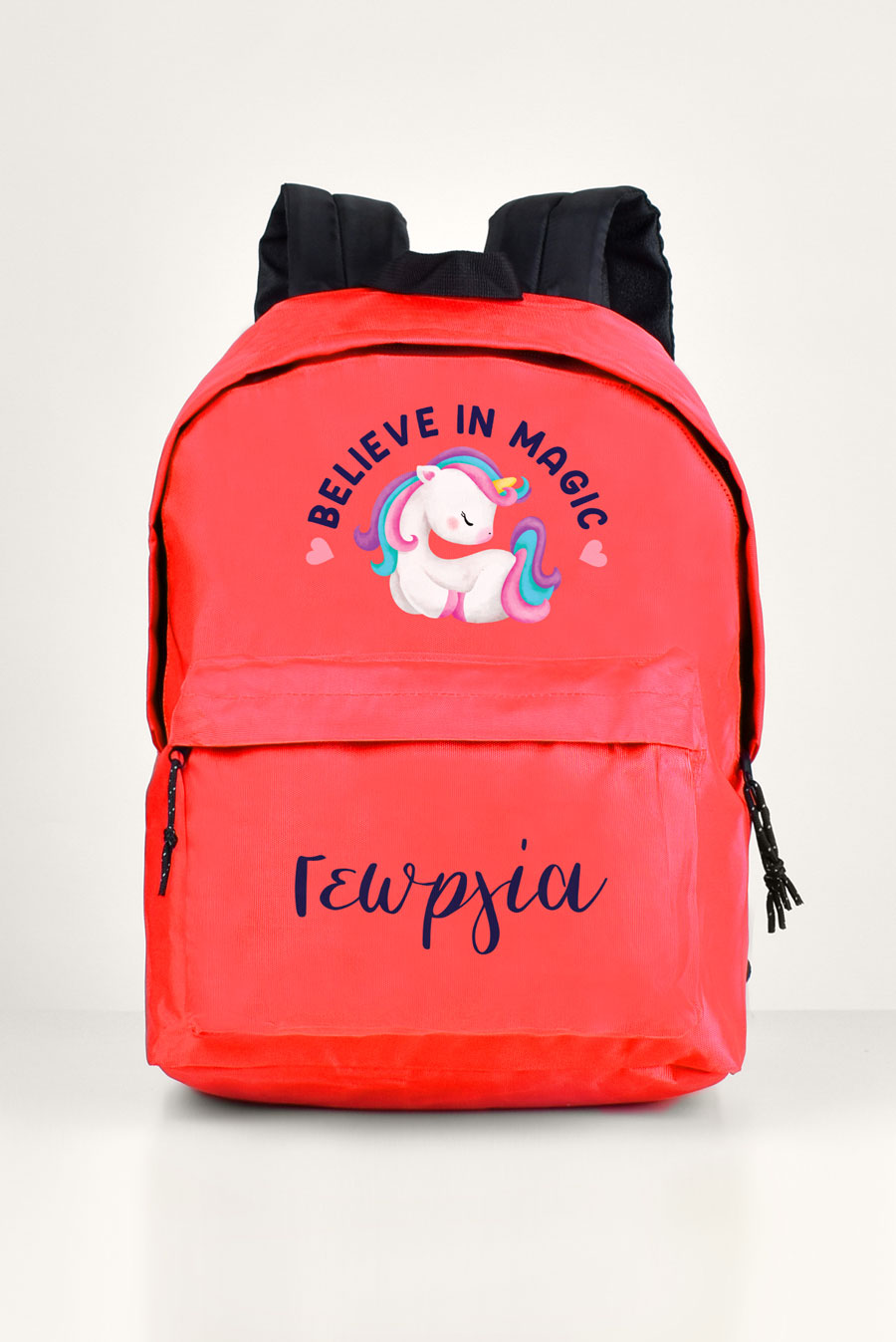 Σχολική Τσάντα Δημοτικού, Κόκκινο Χρώμα, Unicorn Magic