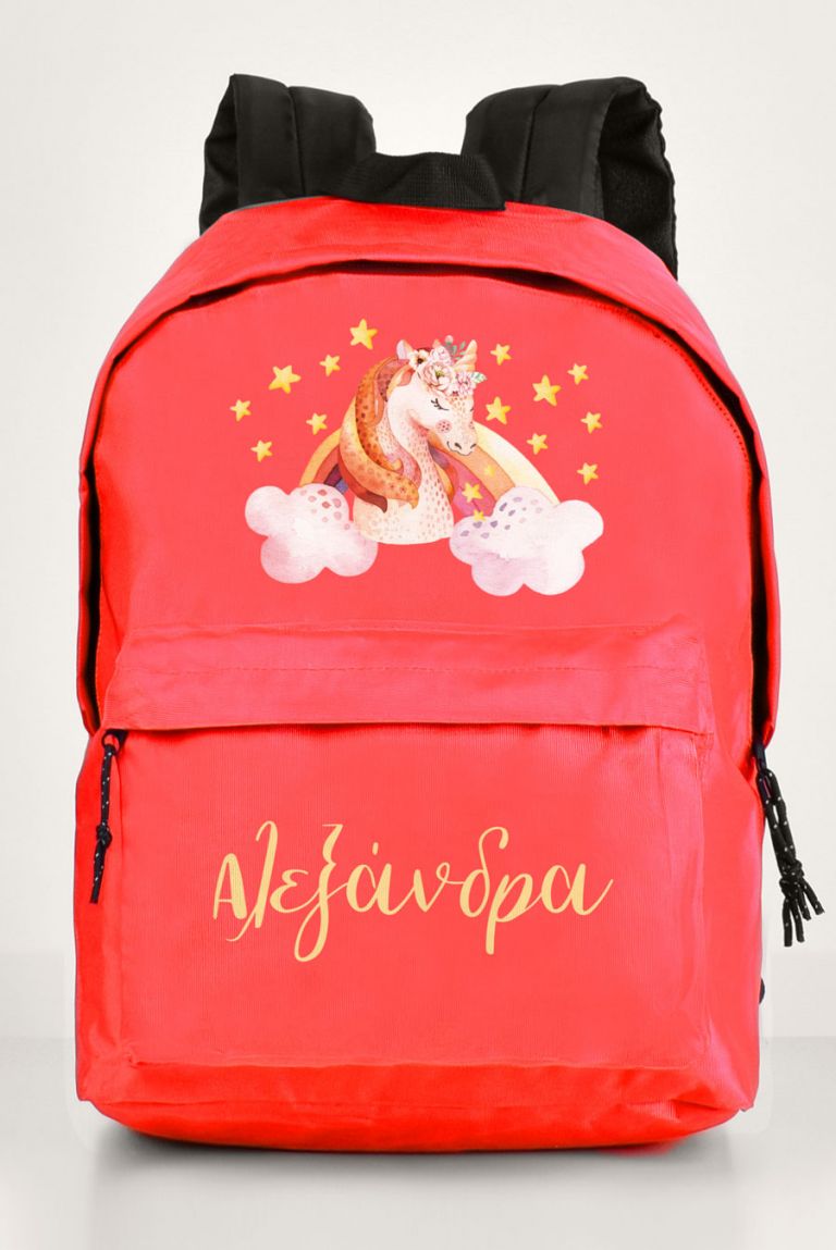 Σχολική Τσάντα Δημοτικού, Κόκκινο Χρώμα, Unicorn Sky