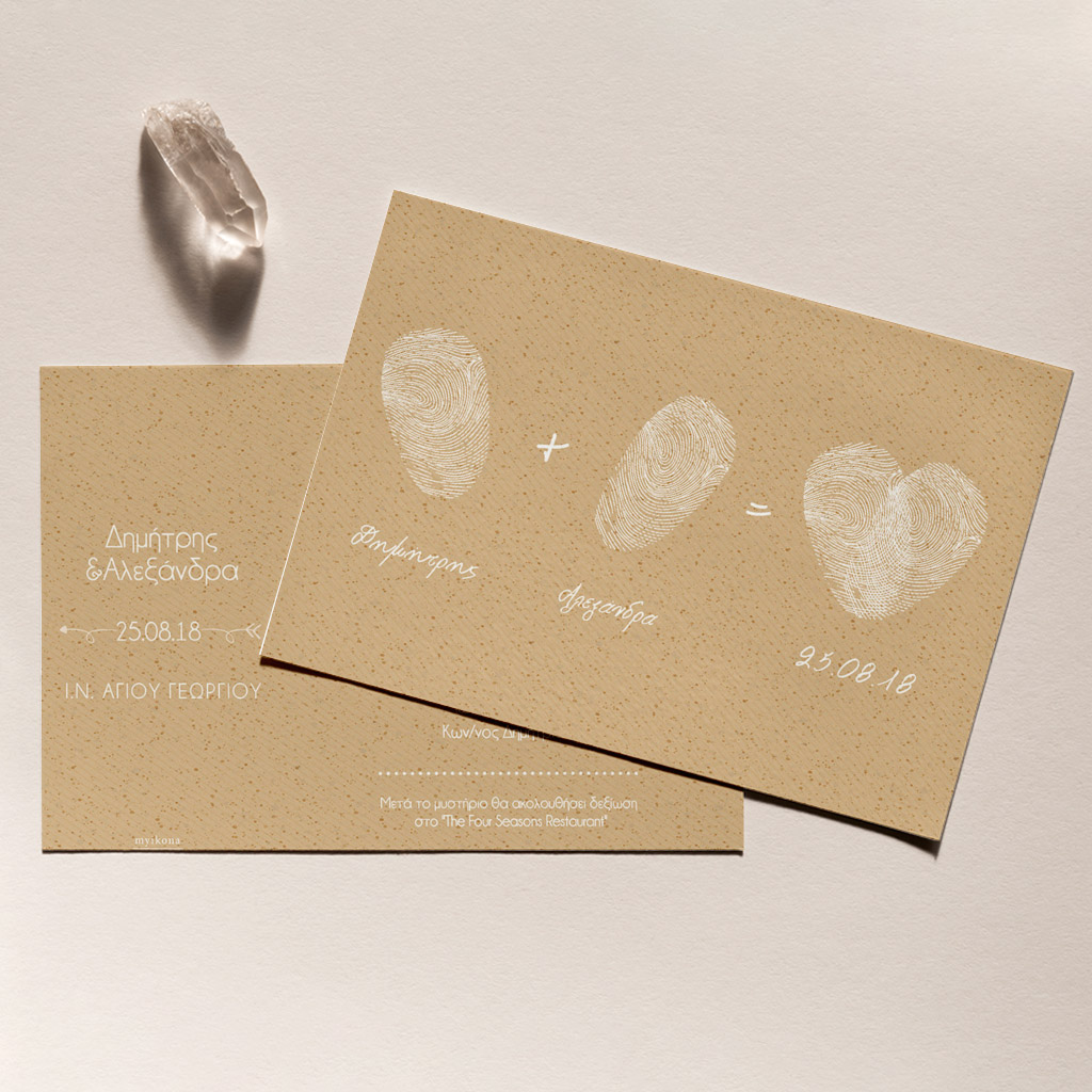 Αποκτήστε τα προσκλητήρια γάμου με σχέδιο Minimal Elegance. Οι πελάτες μας τα ξεχωρίζουν για το υψηλής ποιότητας ιταλικό χαρτί και την εκτύπωση υψηλής ευκρίνειας Myikona High Definition. Διαθέσιμα σε διαφορετικές διαστάσεις.
