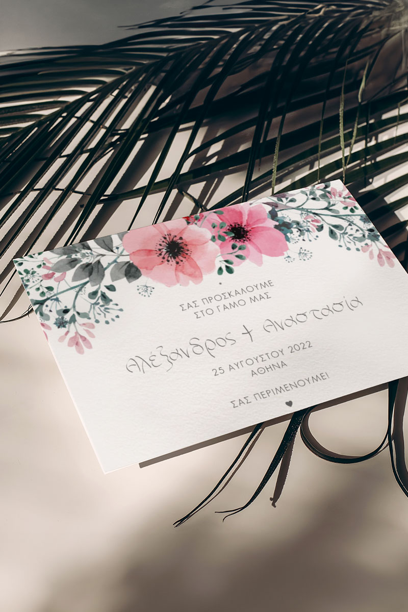Αποκτήστε τα προσκλητήρια γάμου με σχέδιο Minimal Ανθισμένα Λουλούδια. Οι πελάτες μας τα ξεχωρίζουν για το υψηλής ποιότητας ιταλικό χαρτί και την εκτύπωση υψηλής ευκρίνειας Myikona High Definition. Διαθέσιμα σε διαφορετικές διαστάσεις.