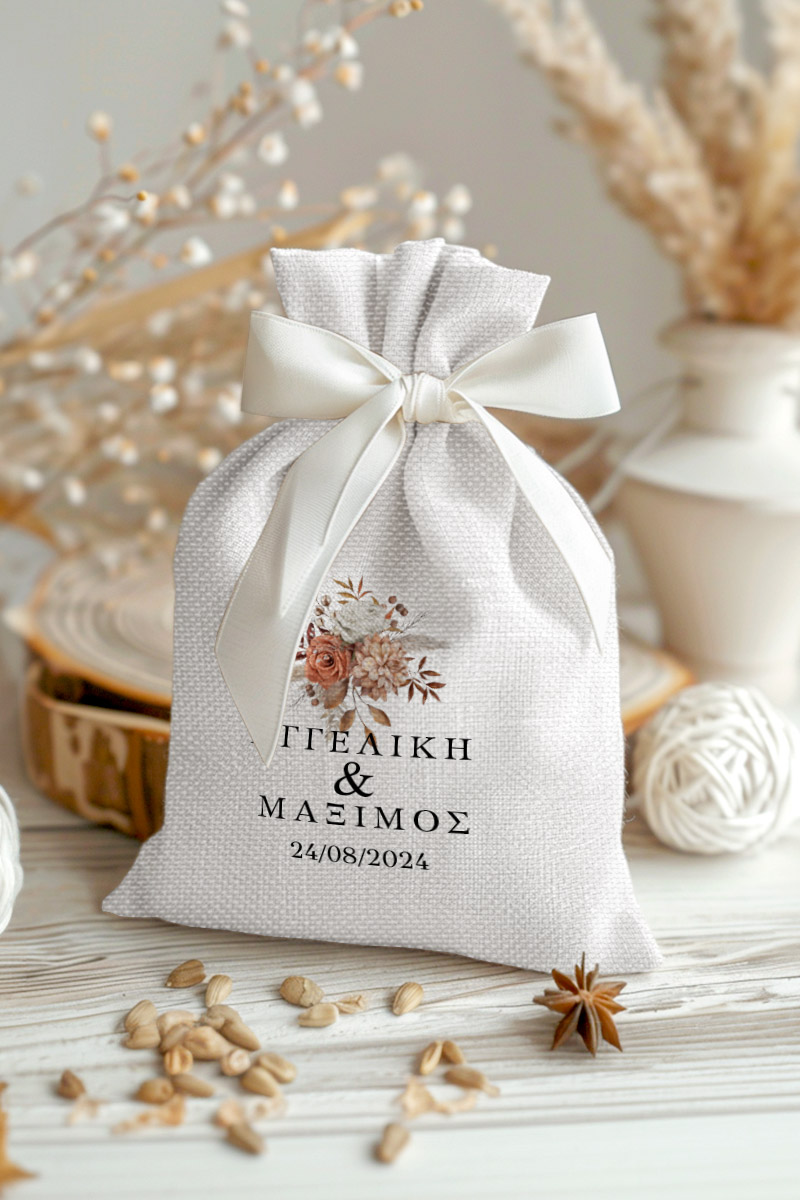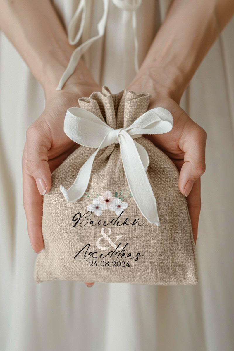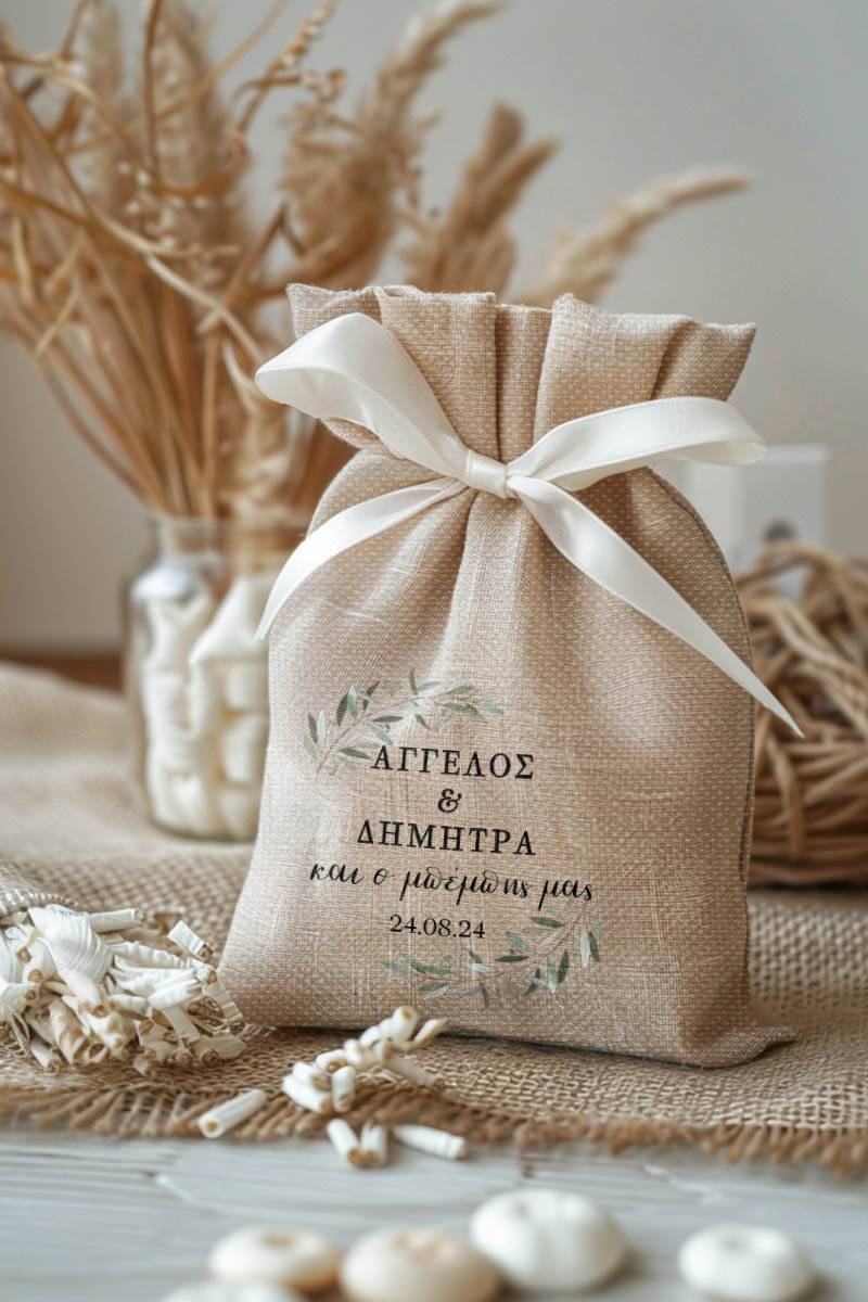 1.59€Μοντέρνες και Πρωτότυπες Μπομπονιέρες Γάμου και Βάπτισης με Πουγκί από Καμβά | Σετ Πουγκί, Εσωτερικό Τούλι & Κορδέλα Σατέν | Premium ποιότητα