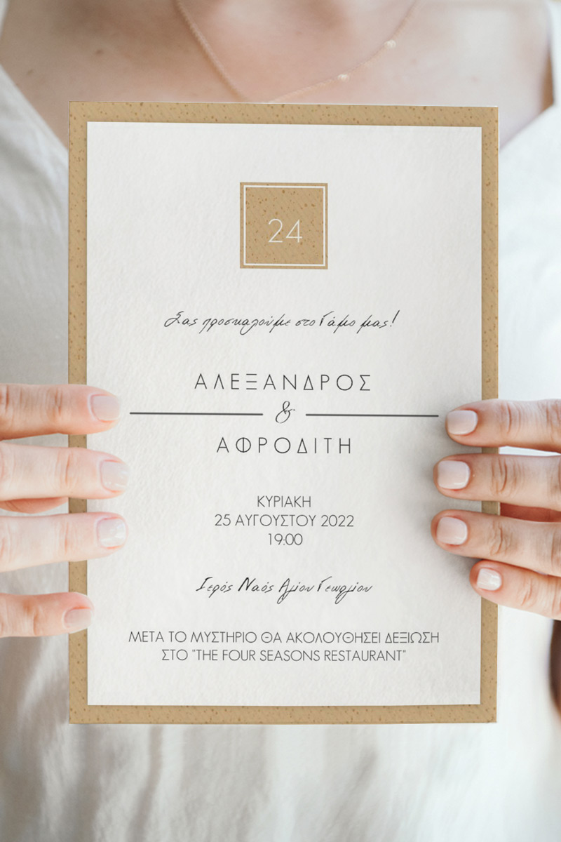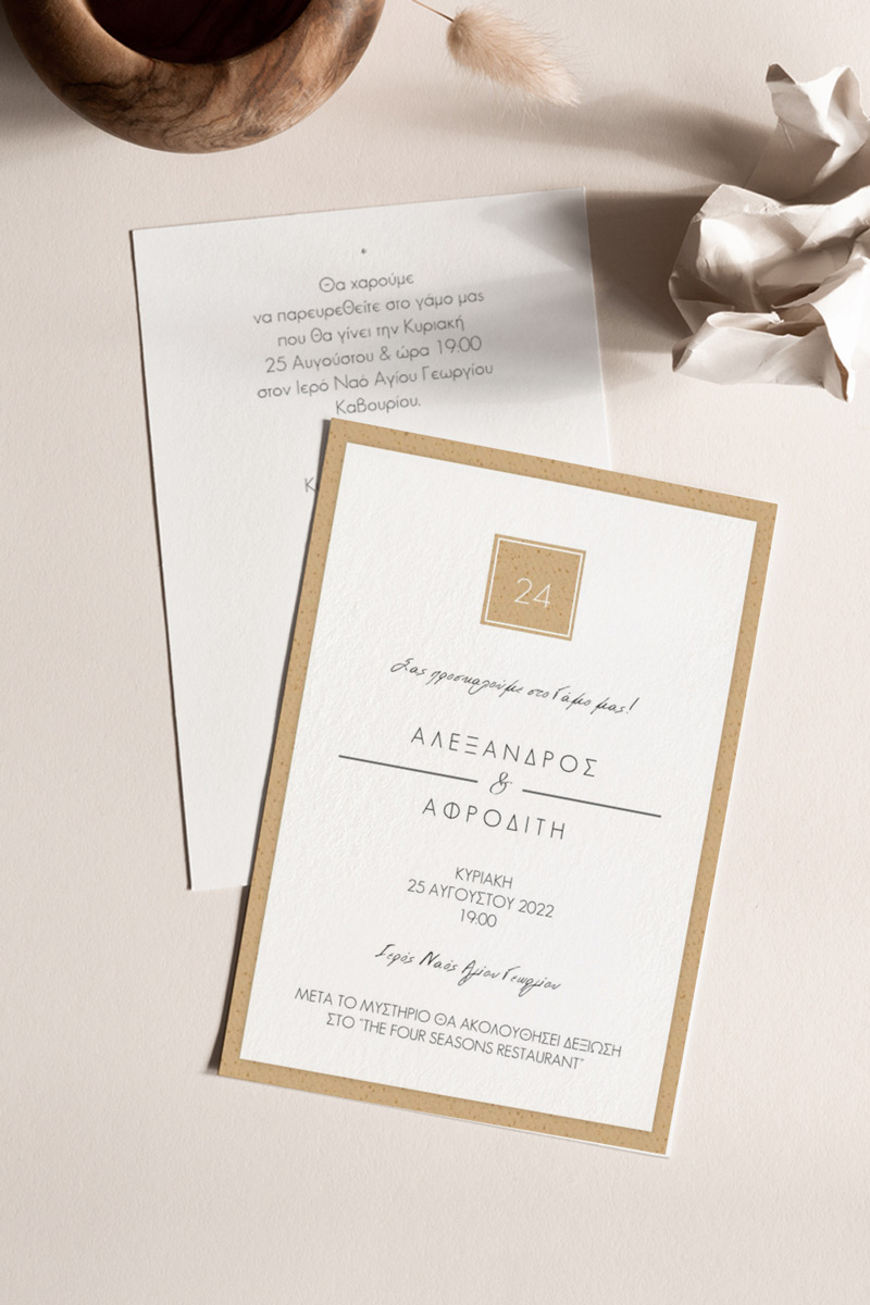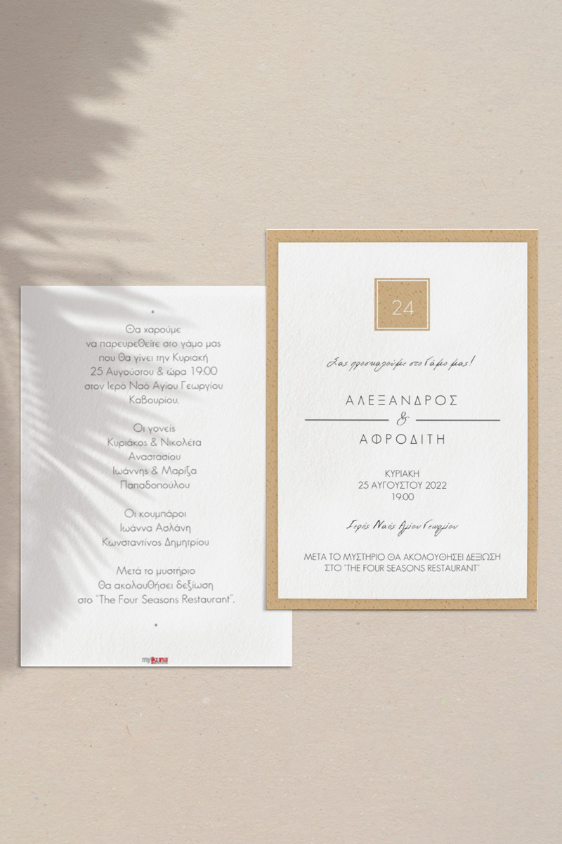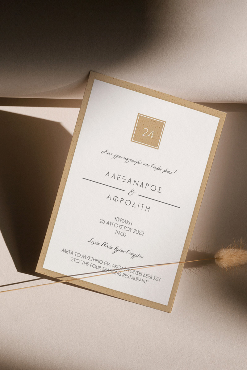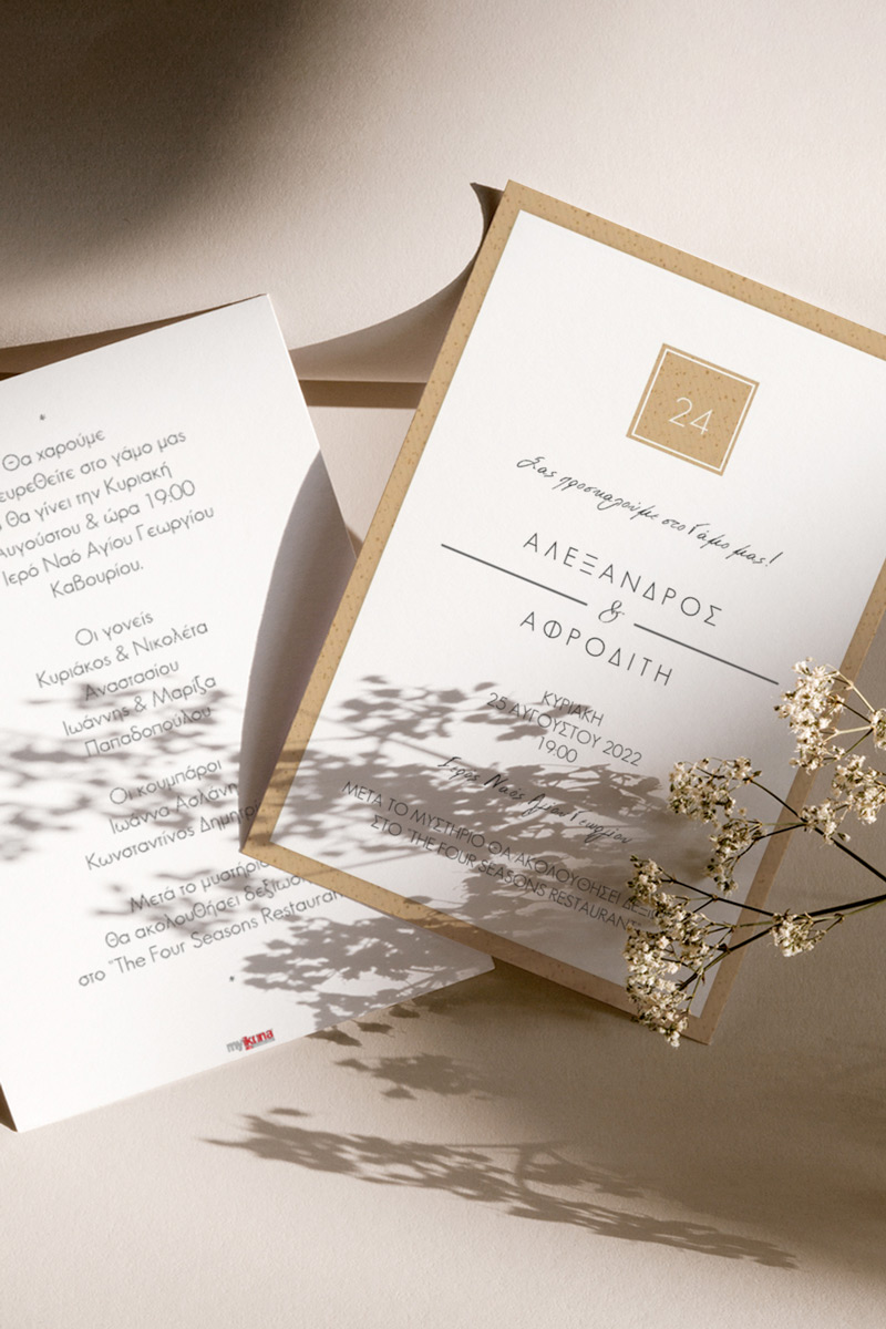 Αποκτήστε τα προσκλητήρια γάμου με σχέδιο Minimal Elegance. Οι πελάτες μας τα ξεχωρίζουν για το υψηλής ποιότητας ιταλικό χαρτί και την εκτύπωση υψηλής ευκρίνειας Myikona High Definition. Διαθέσιμα σε διαφορετικές διαστάσεις.