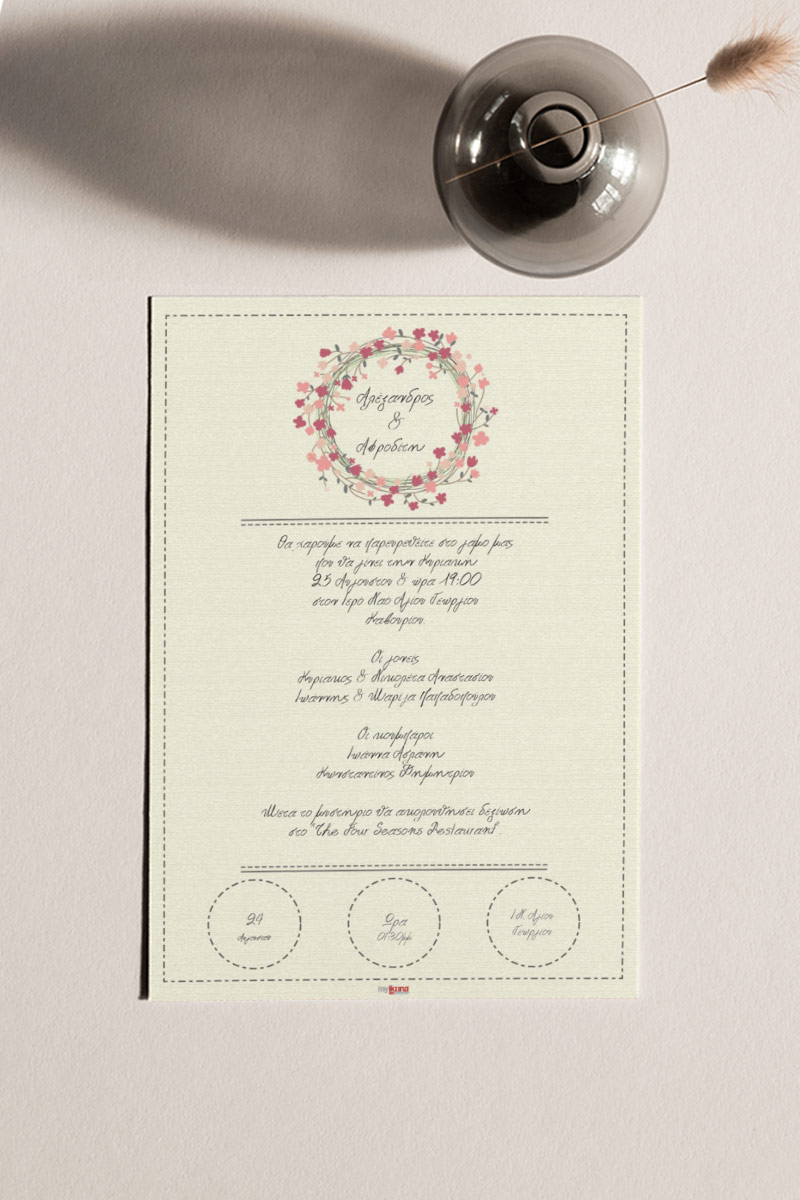 Αποκτήστε τα προσκλητήρια γάμου με σχέδιο Minimal Ανθισμένα Λουλούδια. Οι πελάτες μας τα ξεχωρίζουν για το υψηλής ποιότητας ιταλικό χαρτί και την εκτύπωση υψηλής ευκρίνειας Myikona High Definition. Διαθέσιμα σε διαφορετικές διαστάσεις.