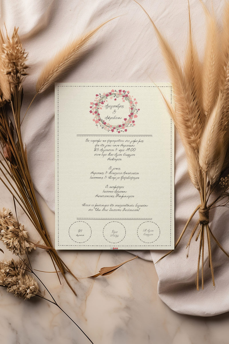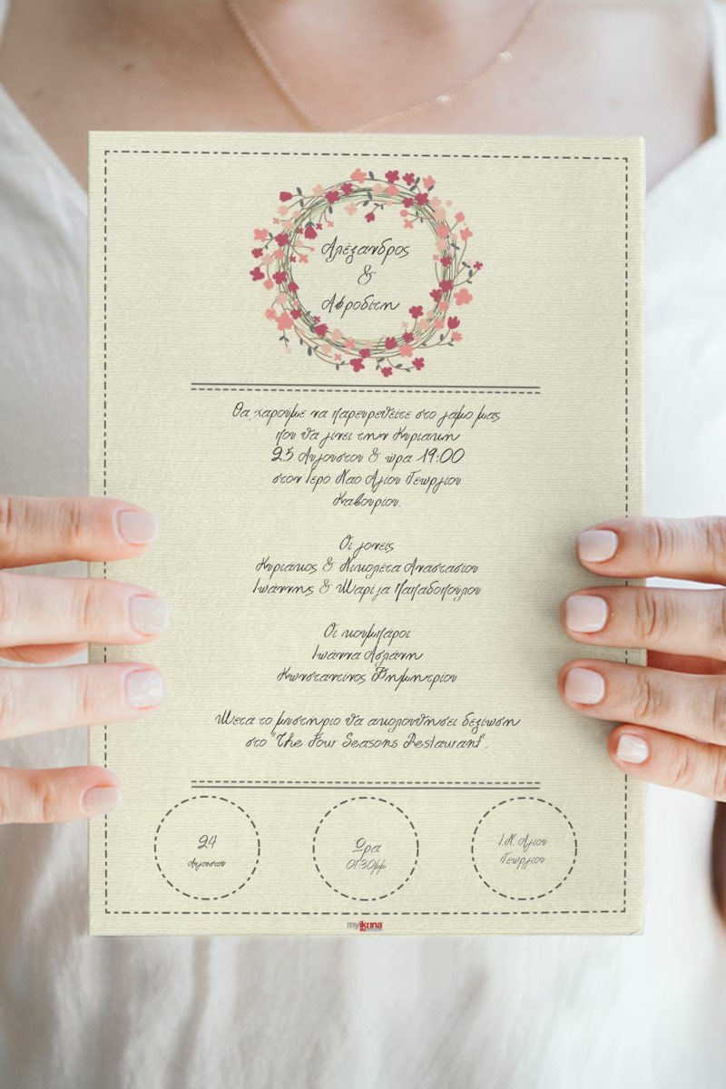Αποκτήστε τα προσκλητήρια γάμου με σχέδιο Boho Κόκκινα Λουλούδια. Οι πελάτες μας τα ξεχωρίζουν για το υψηλής ποιότητας ιταλικό χαρτί και την εκτύπωση υψηλής ευκρίνειας Myikona High Definition. Διαθέσιμα σε διαφορετικές διαστάσεις.