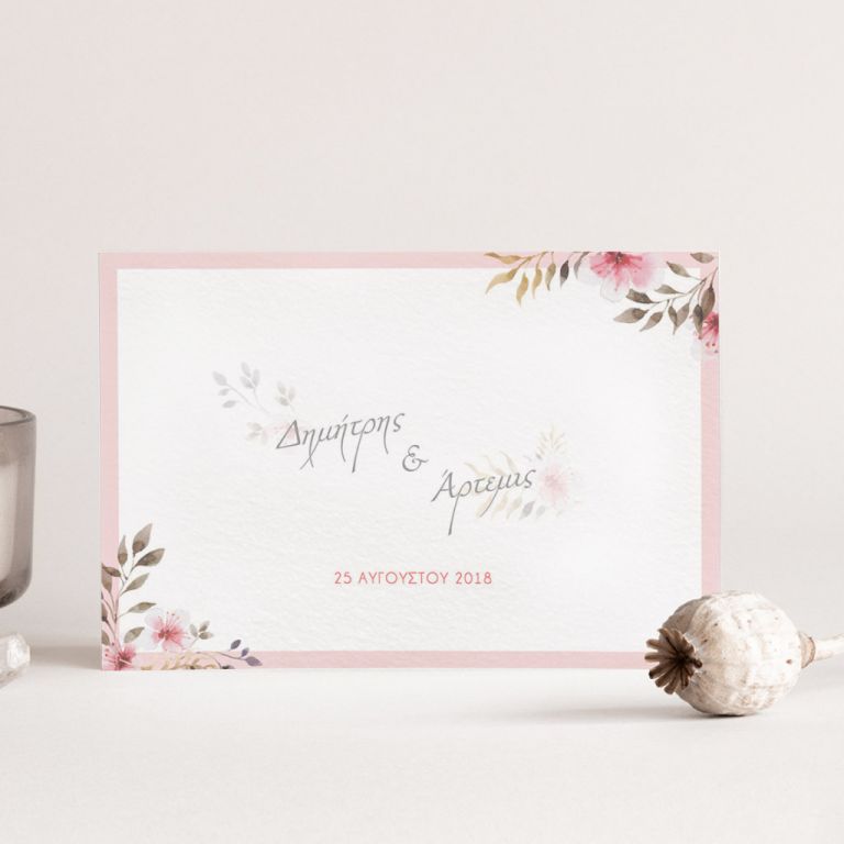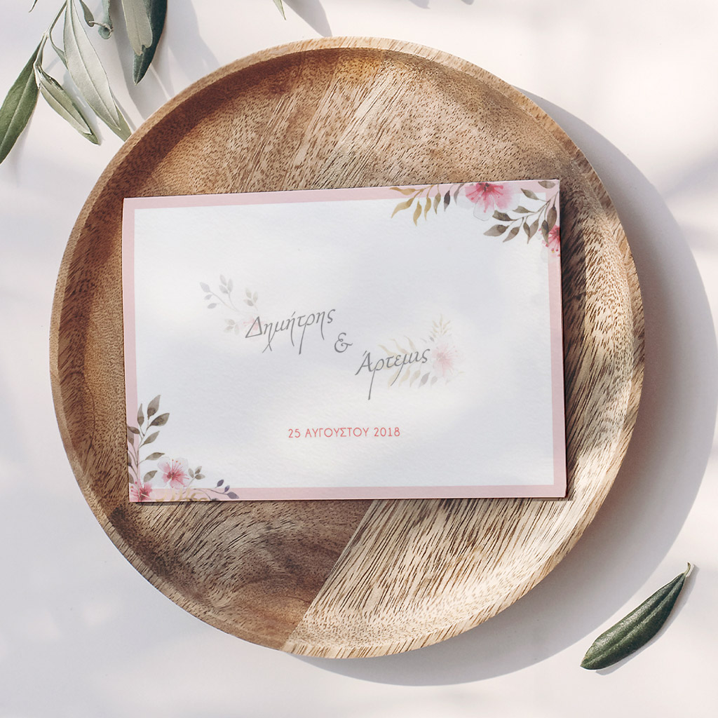 Αποκτήστε τα προσκλητήρια γάμου με σχέδιο Minimal Ανθισμένα Λουλούδια. Οι πελάτες μας τα ξεχωρίζουν για το υψηλής ποιότητας ιταλικό χαρτί και την εκτύπωση υψηλής ευκρίνειας Myikona High Definition. Διαθέσιμα σε διαφορετικές διαστάσεις.