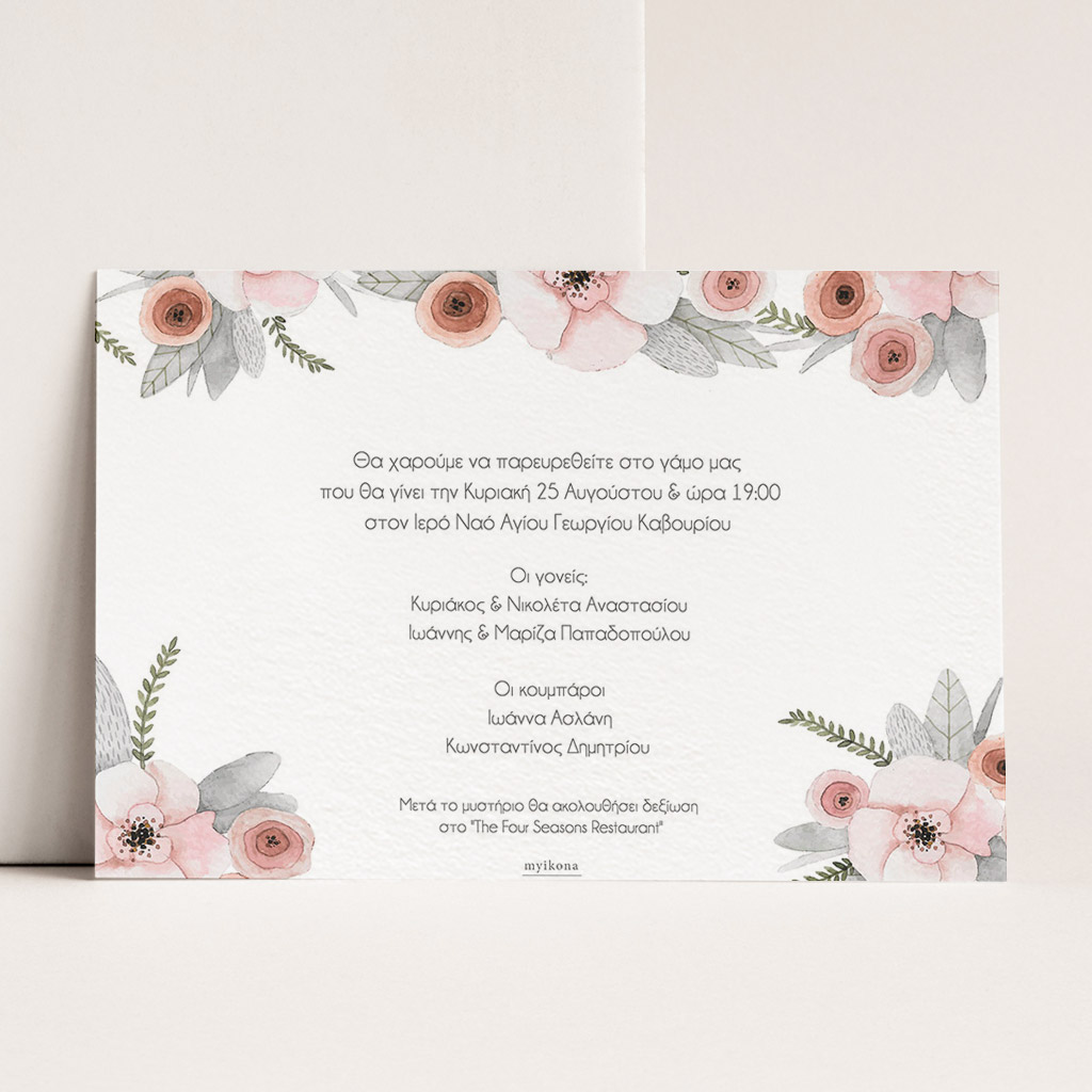Αποκτήστε τα προσκλητήρια γάμου με σχέδιο Minimal Ανθισμένα Λουλούδια. Οι πελάτες μας τα ξεχωρίζουν για το υψηλής ποιότητας ιταλικό χαρτί και την εκτύπωση υψηλής ευκρίνειας Myikona High Definition. Διαθέσιμα σε διαφορετικές διαστάσεις.