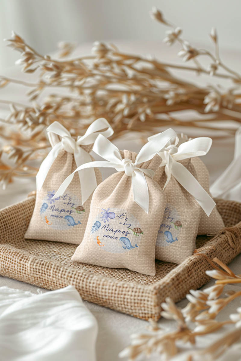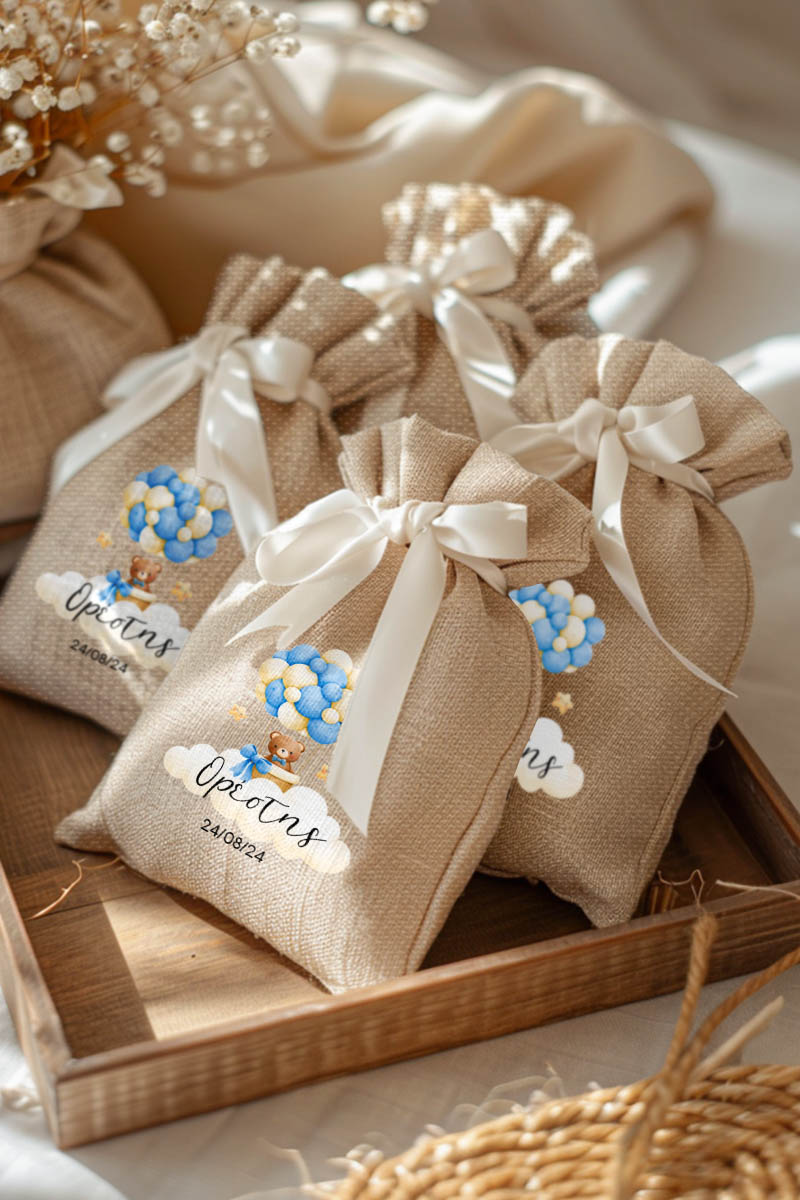 1.59€Μοντέρνες και Πρωτότυπες Μπομπονιέρες Βάπτισης με Πουγκί από Καμβά | Σετ Πουγκί, Εσωτερικό Τούλι & Κορδέλα Σατέν | Premium ποιότητα