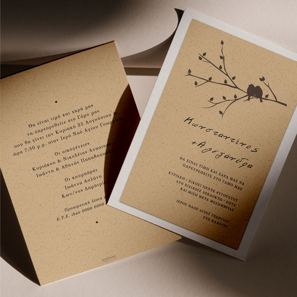 Αποκτήστε τα προσκλητήρια γάμου με σχέδιο Minimal Elegance. Οι πελάτες μας τα ξεχωρίζουν για το υψηλής ποιότητας ιταλικό χαρτί και την εκτύπωση υψηλής ευκρίνειας Myikona High Definition. Διαθέσιμα σε διαφορετικές διαστάσεις.