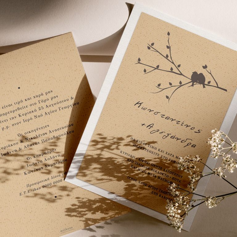 Αποκτήστε τα προσκλητήρια γάμου με σχέδιο Minimal Ανθισμένα Λουλούδια. Οι πελάτες μας τα ξεχωρίζουν για το υψηλής ποιότητας ιταλικό χαρτί και την εκτύπωση υψηλής ευκρίνειας Myikona High Definition. Διαθέσιμα σε διαφορετικές διαστάσεις.