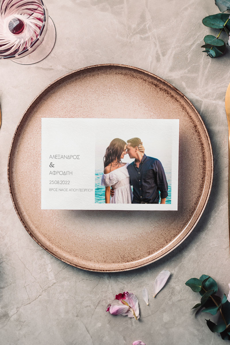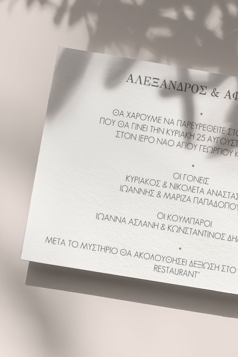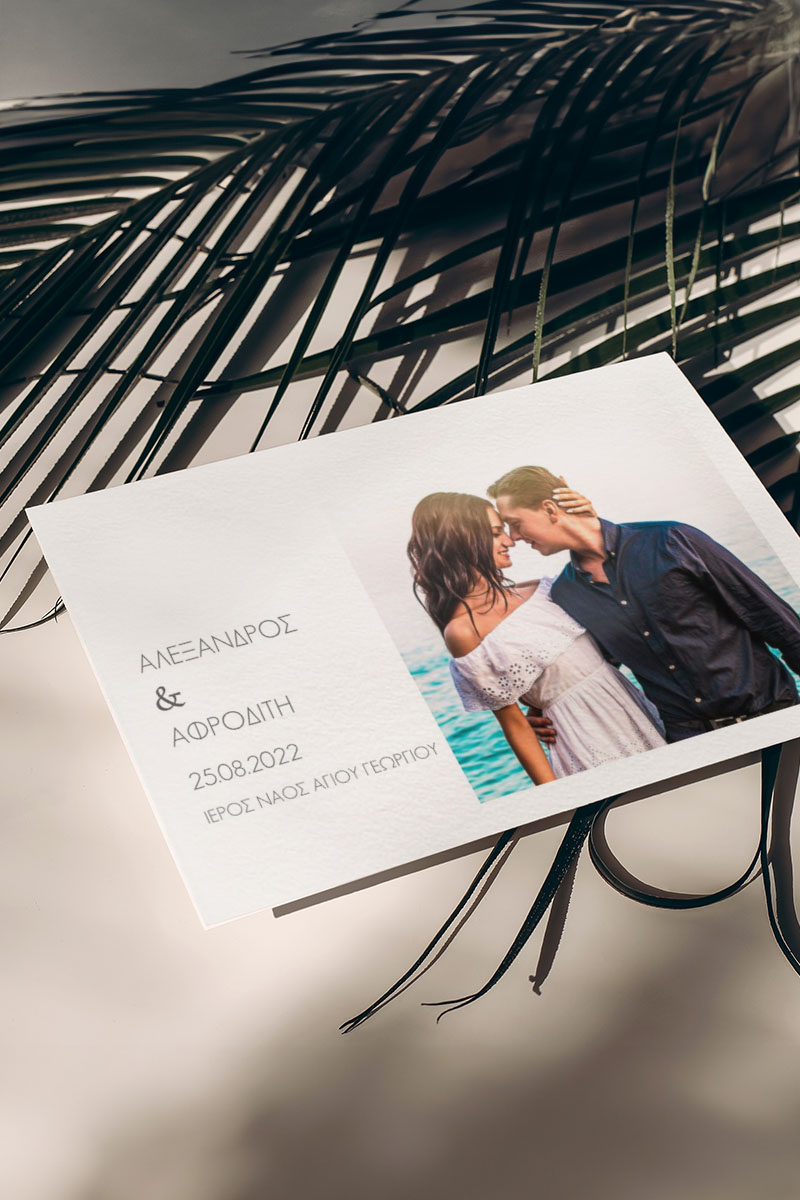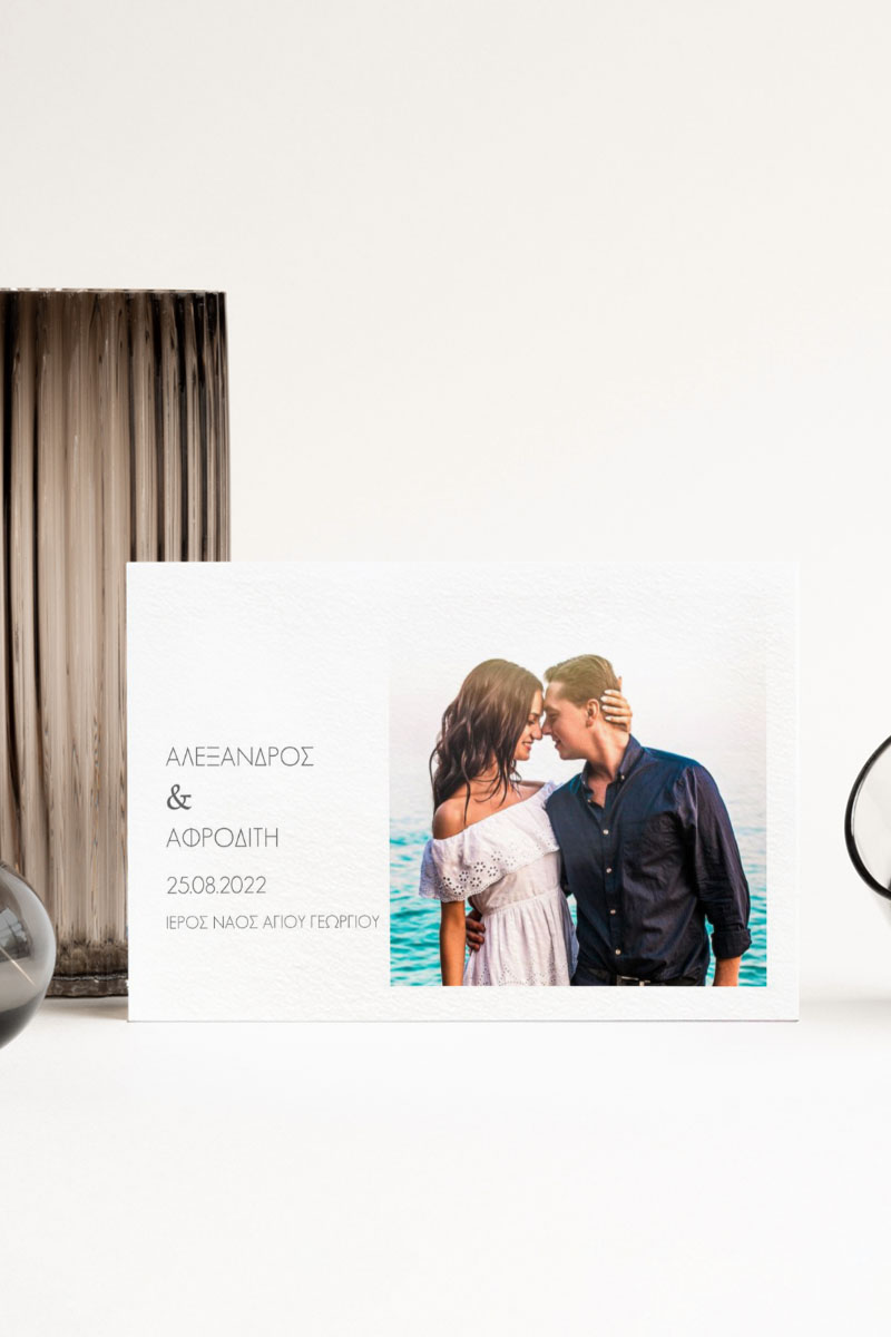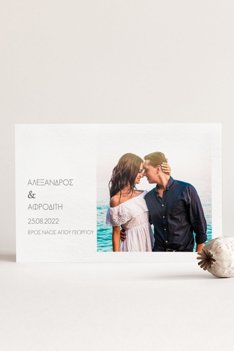 Αποκτήστε τα προσκλητήρια γάμου με σχέδιο Minimal Elegance. Οι πελάτες μας τα ξεχωρίζουν για το υψηλής ποιότητας ιταλικό χαρτί και την εκτύπωση υψηλής ευκρίνειας Myikona High Definition. Διαθέσιμα σε διαφορετικές διαστάσεις.
