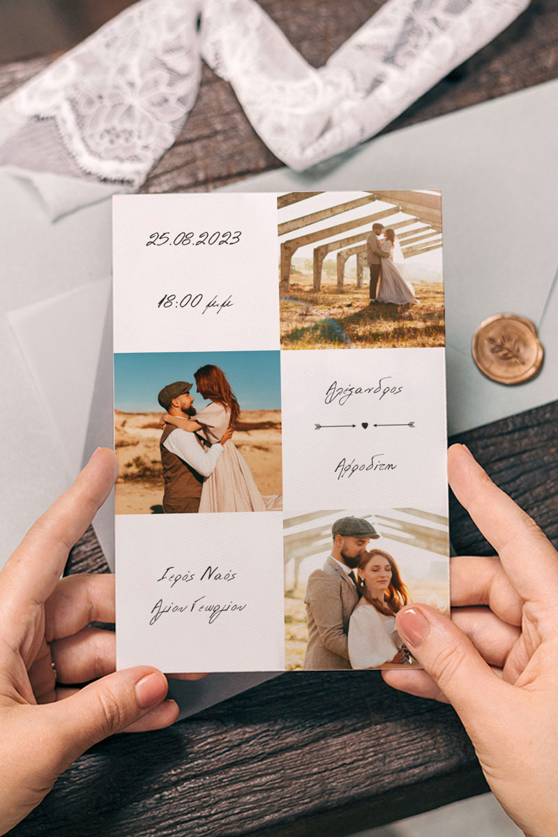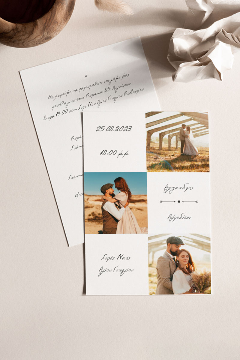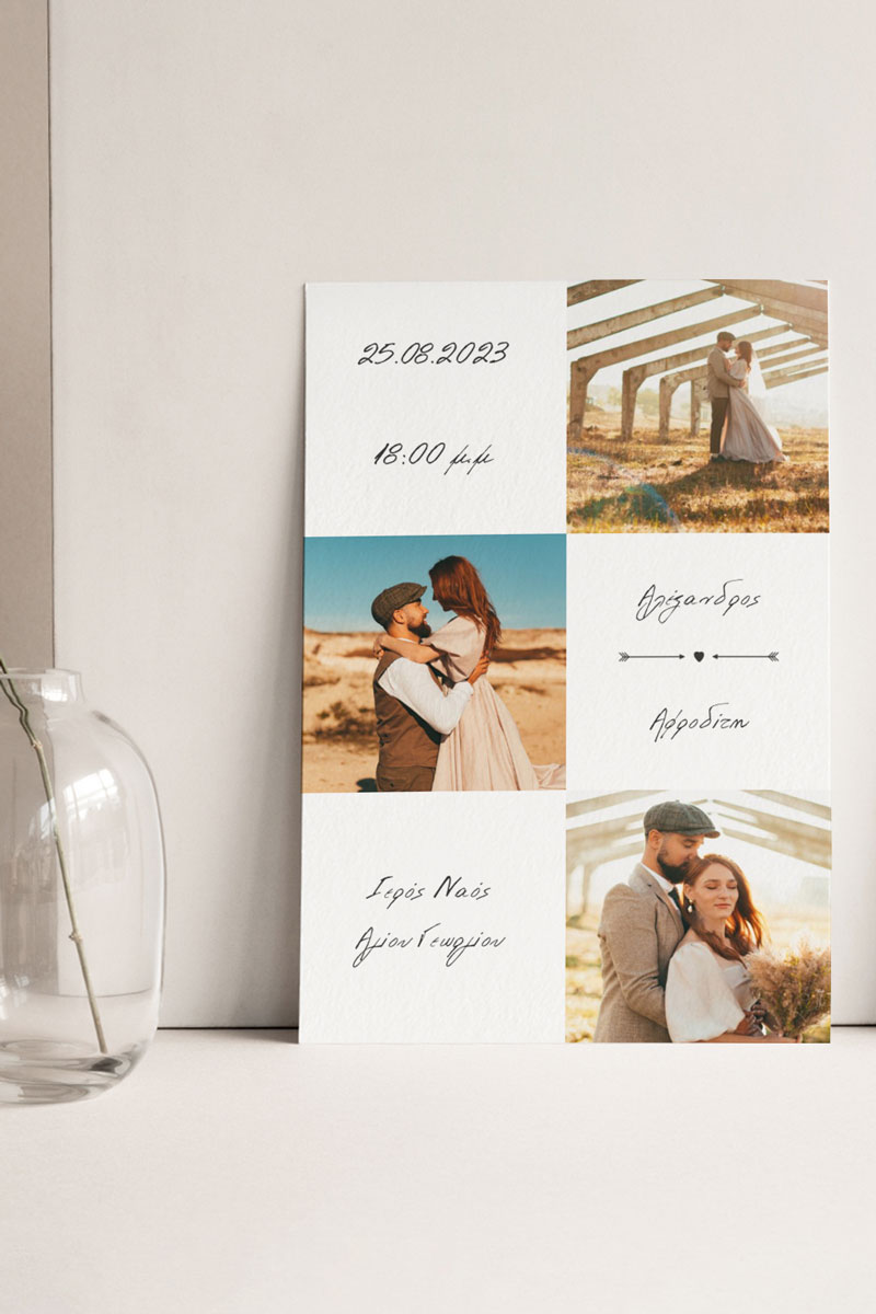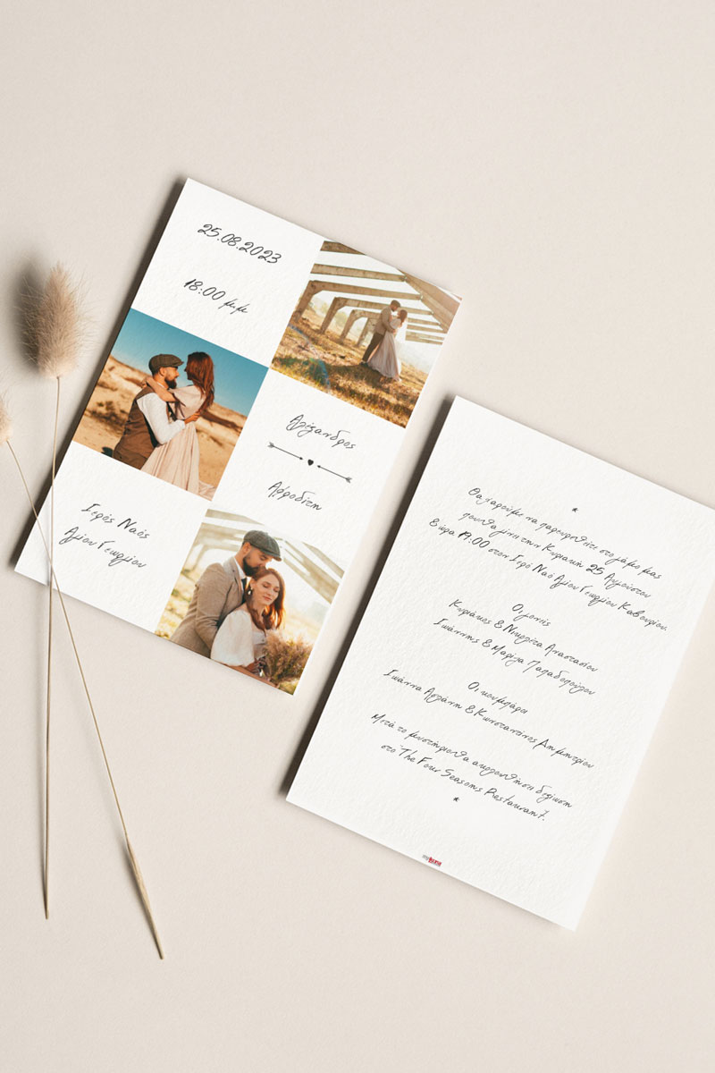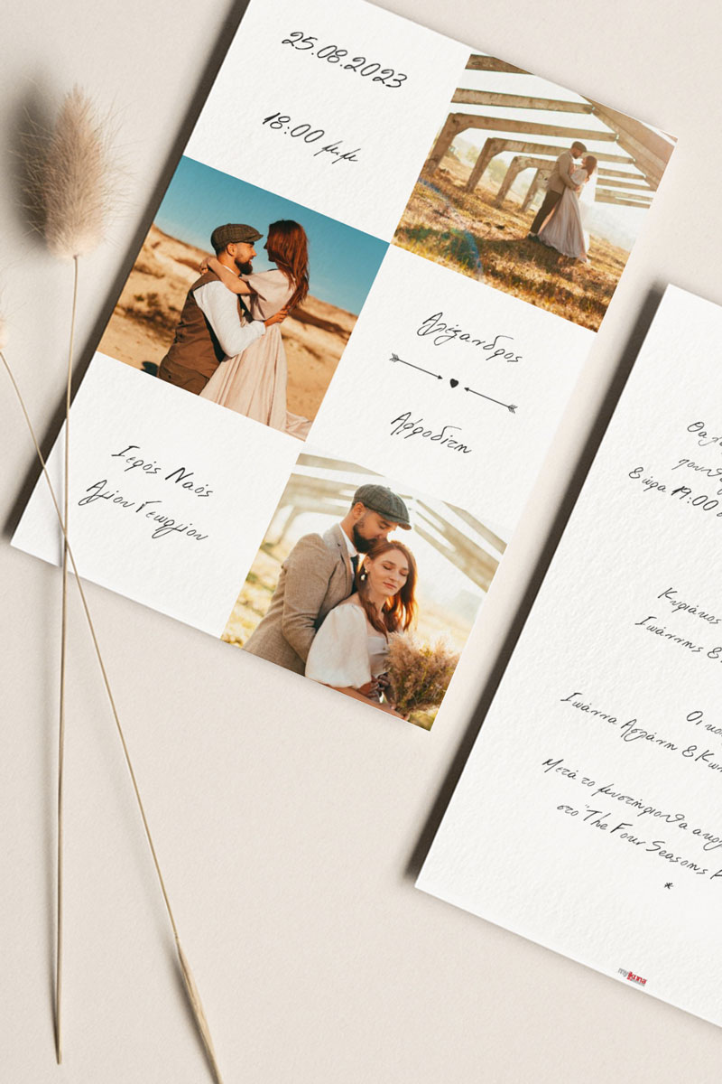 Αποκτήστε τα προσκλητήρια γάμου με σχέδιο Minimal Elegance. Οι πελάτες μας τα ξεχωρίζουν για το υψηλής ποιότητας ιταλικό χαρτί και την εκτύπωση υψηλής ευκρίνειας Myikona High Definition. Διαθέσιμα σε διαφορετικές διαστάσεις.