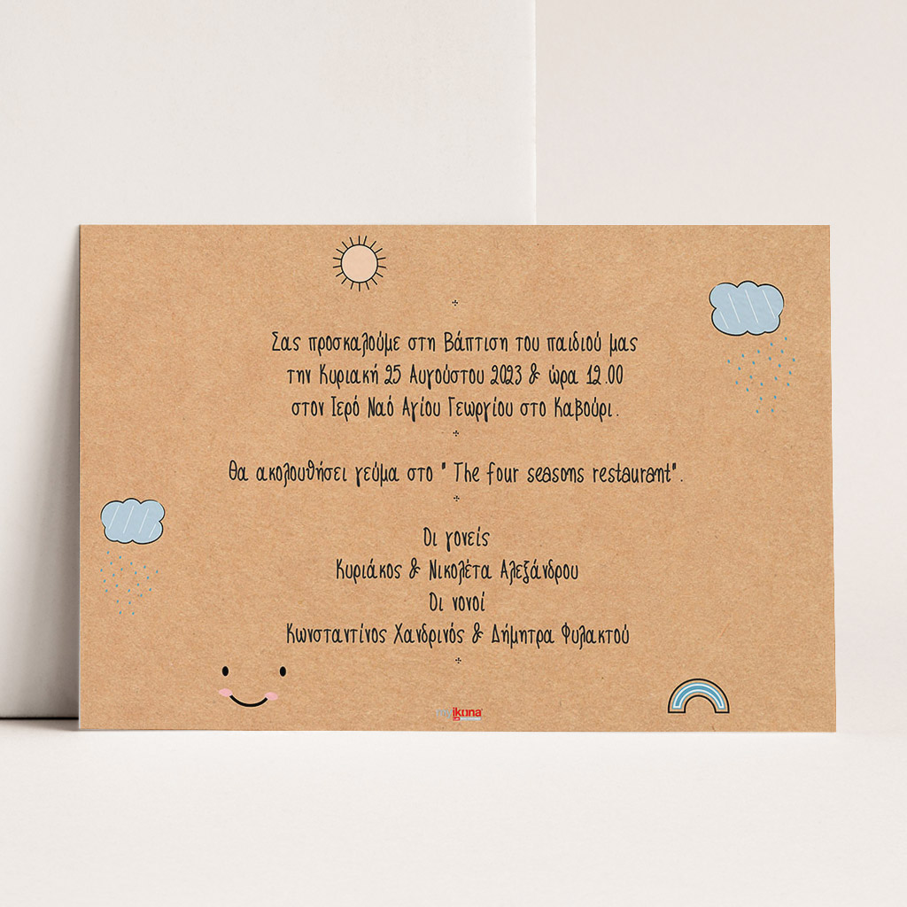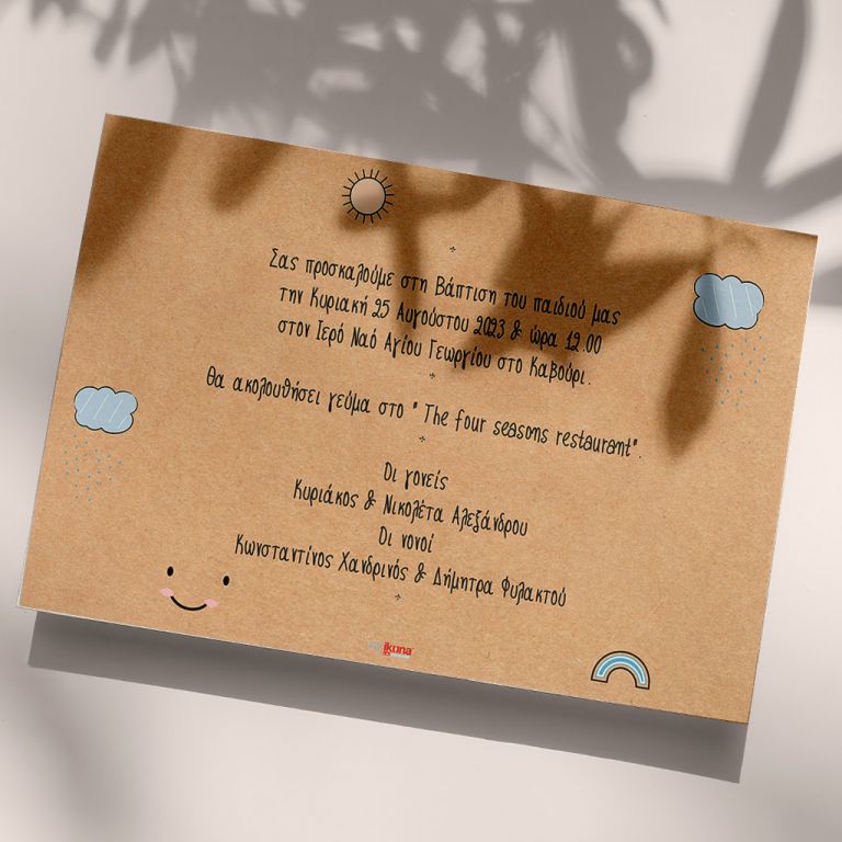 Προσκαλέστε επίσημα τους φίλους, την οικογένεια και τους αγαπημένους σας στο μυστήριο της Βάπτισης του αγοριού σας ή του κοριτσιού σας με το ομορφότερο προσκλητήριο Βάπτισης! Είτε πρόκειται για μια vintage ή ρομαντική Βάπτιση στην Αθήνα, είτε για μια πρωτότυπη Βάπτιση στη Θεσσαλονίκη, θα δημιουργήσετε μια μοναδική πρόσκληση ακριβώς όπως την έχετε ονειρευτεί