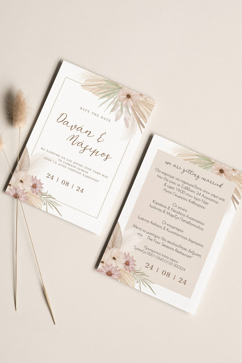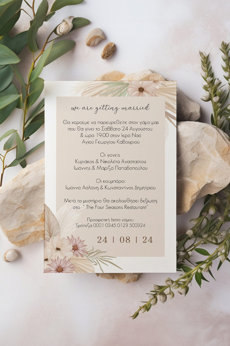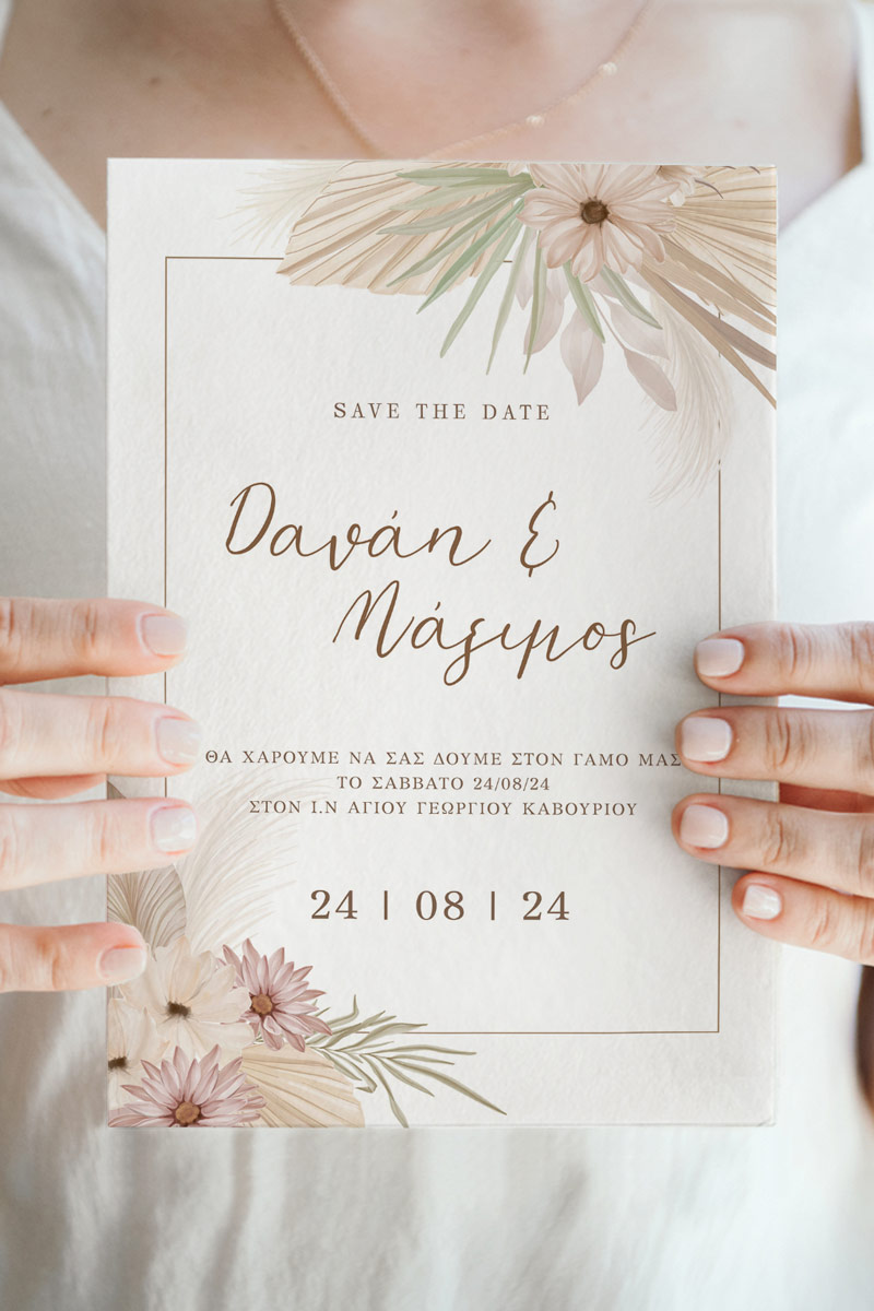 Αποκτήστε τα προσκλητήρια γάμου με σχέδιο Boho Κόκκινα Λουλούδια. Οι πελάτες μας τα ξεχωρίζουν για το υψηλής ποιότητας ιταλικό χαρτί και την εκτύπωση υψηλής ευκρίνειας Myikona High Definition. Διαθέσιμα σε διαφορετικές διαστάσεις.
