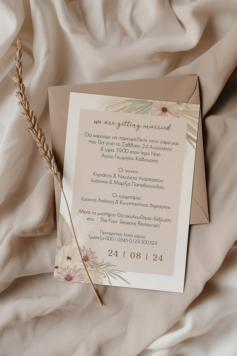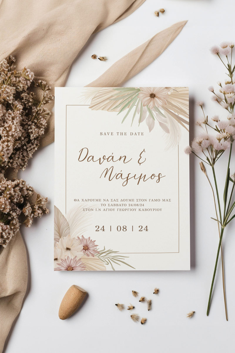 Αποκτήστε τα προσκλητήρια γάμου με σχέδιο Minimal Ανθισμένα Λουλούδια. Οι πελάτες μας τα ξεχωρίζουν για το υψηλής ποιότητας ιταλικό χαρτί και την εκτύπωση υψηλής ευκρίνειας Myikona High Definition. Διαθέσιμα σε διαφορετικές διαστάσεις.