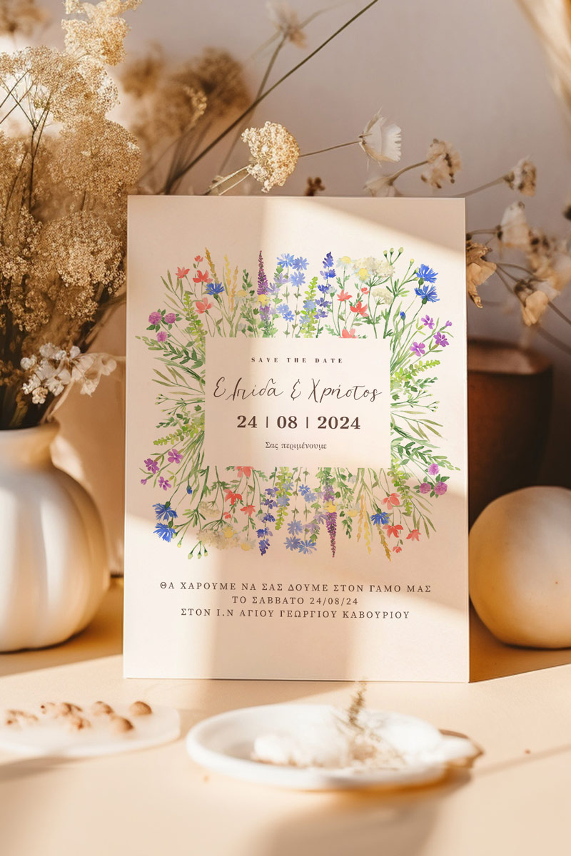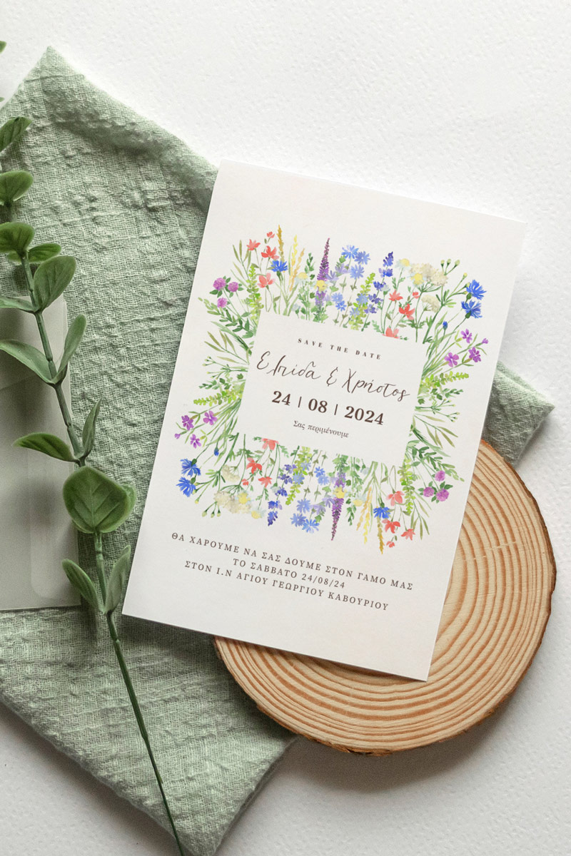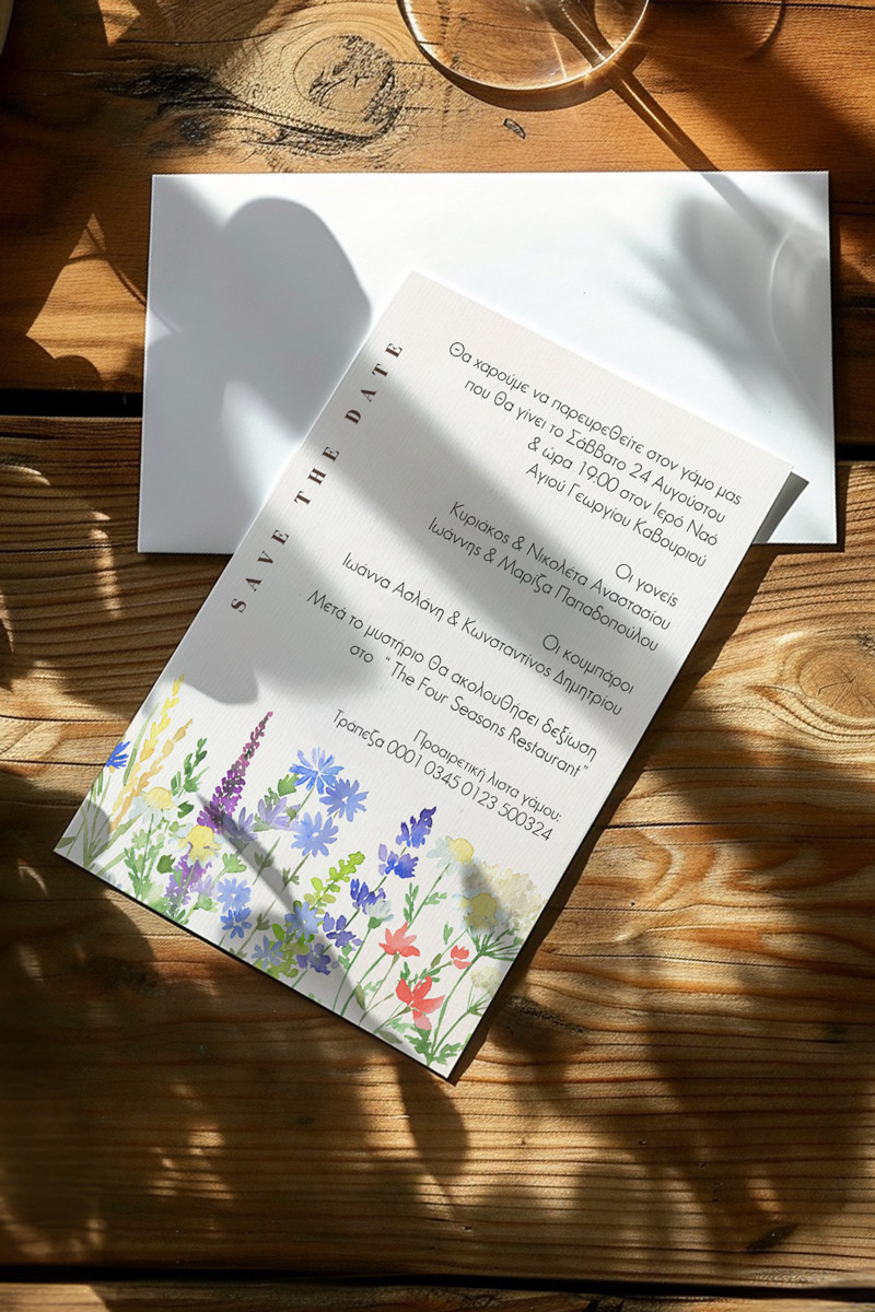 Αποκτήστε τα προσκλητήρια γάμου με σχέδιο Minimal Ανθισμένα Λουλούδια. Οι πελάτες μας τα ξεχωρίζουν για το υψηλής ποιότητας ιταλικό χαρτί και την εκτύπωση υψηλής ευκρίνειας Myikona High Definition. Διαθέσιμα σε διαφορετικές διαστάσεις.