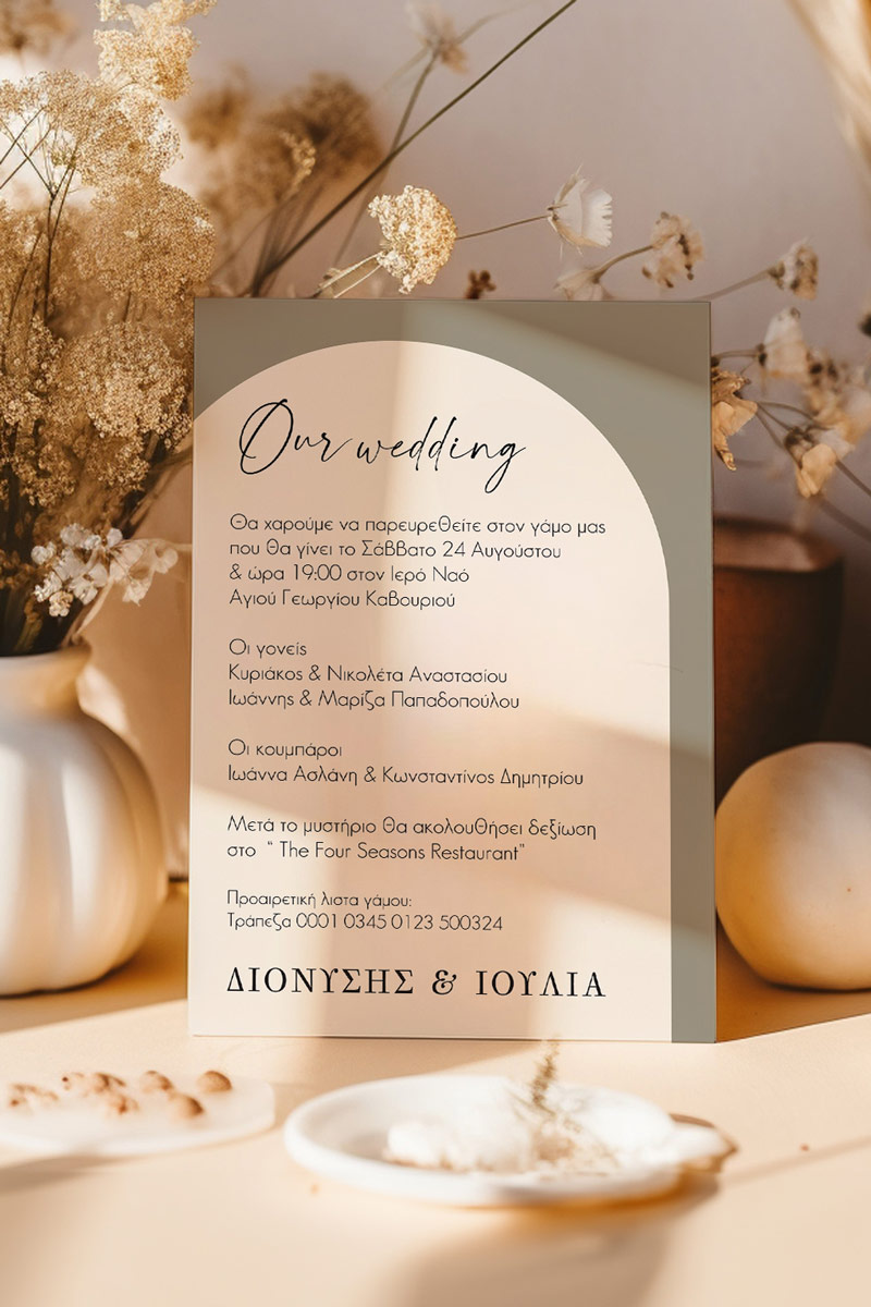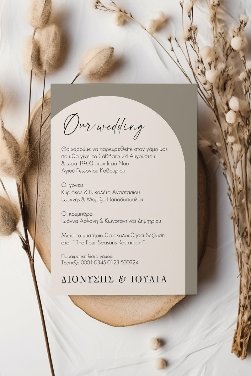 Αποκτήστε τα προσκλητήρια γάμου με σχέδιο Minimal Elegance. Οι πελάτες μας τα ξεχωρίζουν για το υψηλής ποιότητας ιταλικό χαρτί και την εκτύπωση υψηλής ευκρίνειας Myikona High Definition. Διαθέσιμα σε διαφορετικές διαστάσεις.