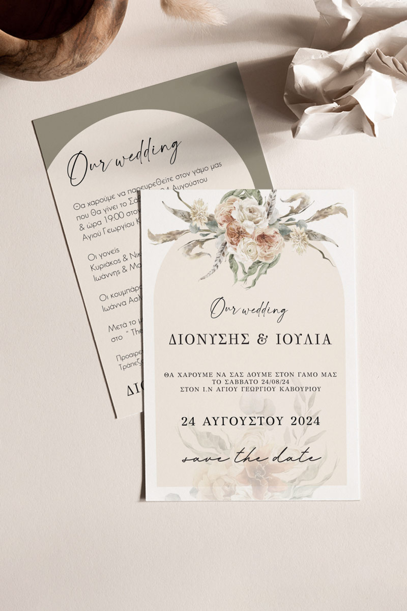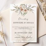 Αποκτήστε τα προσκλητήρια γάμου με σχέδιο Minimal Ανθισμένα Λουλούδια. Οι πελάτες μας τα ξεχωρίζουν για το υψηλής ποιότητας ιταλικό χαρτί και την εκτύπωση υψηλής ευκρίνειας Myikona High Definition. Διαθέσιμα σε διαφορετικές διαστάσεις.
